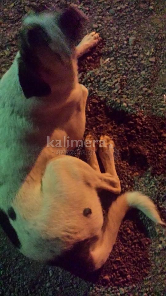 Τα σκυλιά είναι φιλικά και δεν ενοχλούν, όμως το ένα φαίνεται ότι έχει δεχθεί επίθεση ενδεχομένως με μαχαίρι, διότι έχει μία μεγάλη ουλή ψηλά στο ένα του πόδι και βρίσκεται στην είσοδο του Παναρκαδικού Νοσοκομείου, ενώ το άλλο έχει ένα στρογγυλό σημάδι από χτύπημα, πιθανότατα από ξύλο και κυκλοφορεί στην ψυχιατρική μονάδα του Νοσοκομείου.