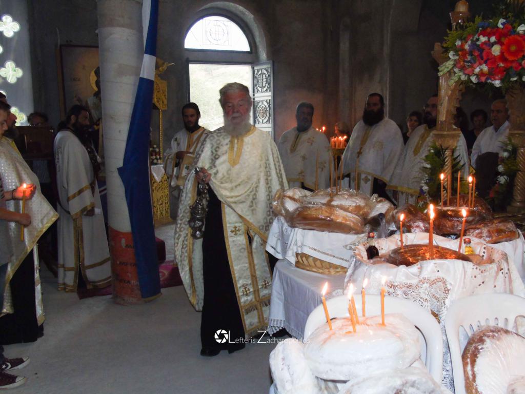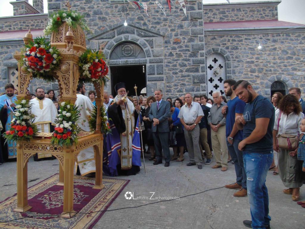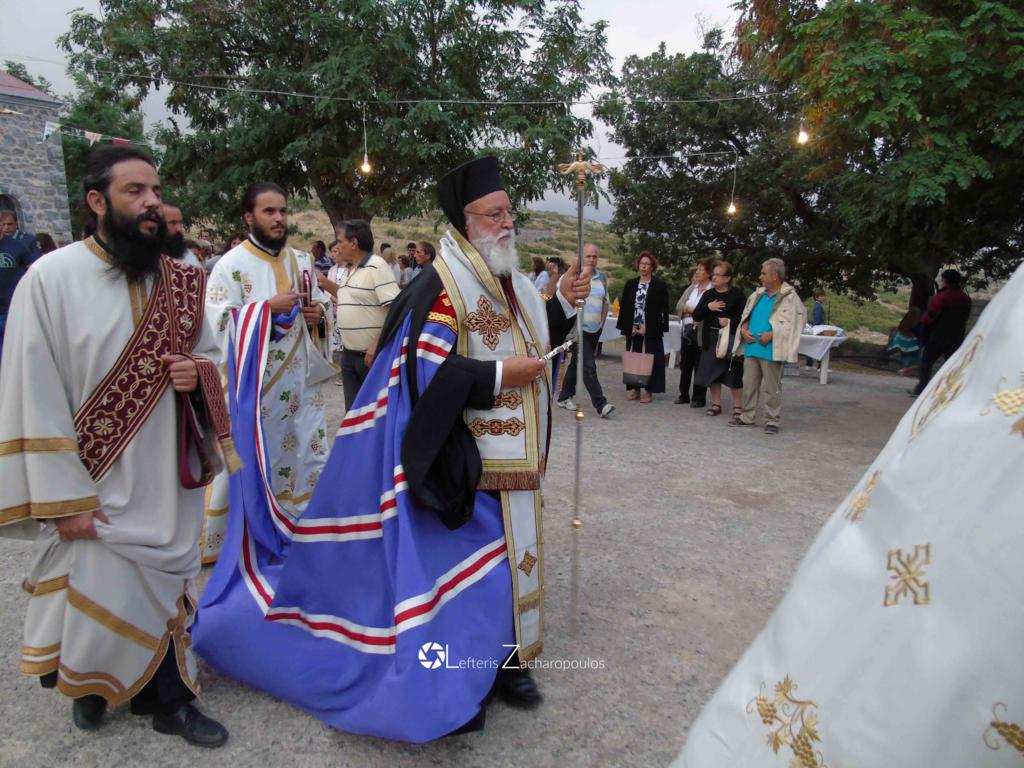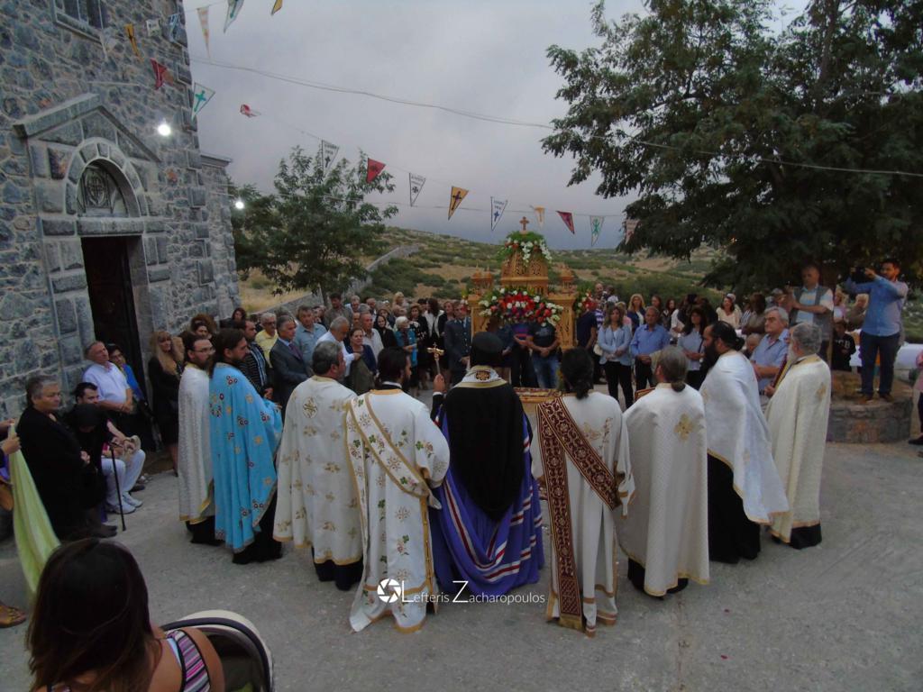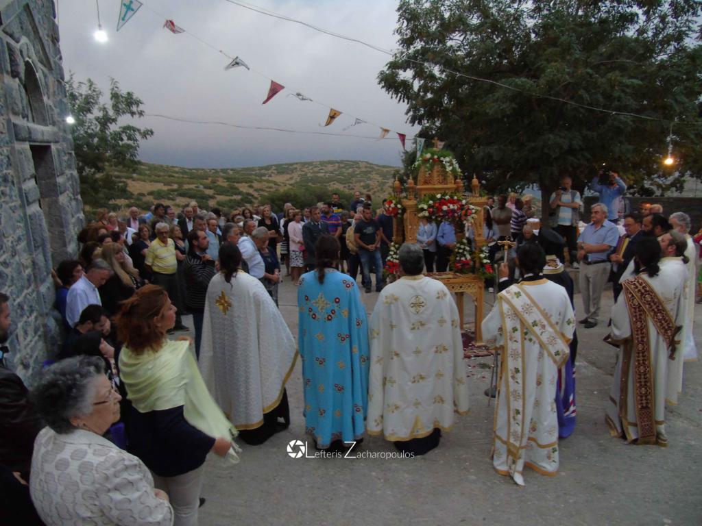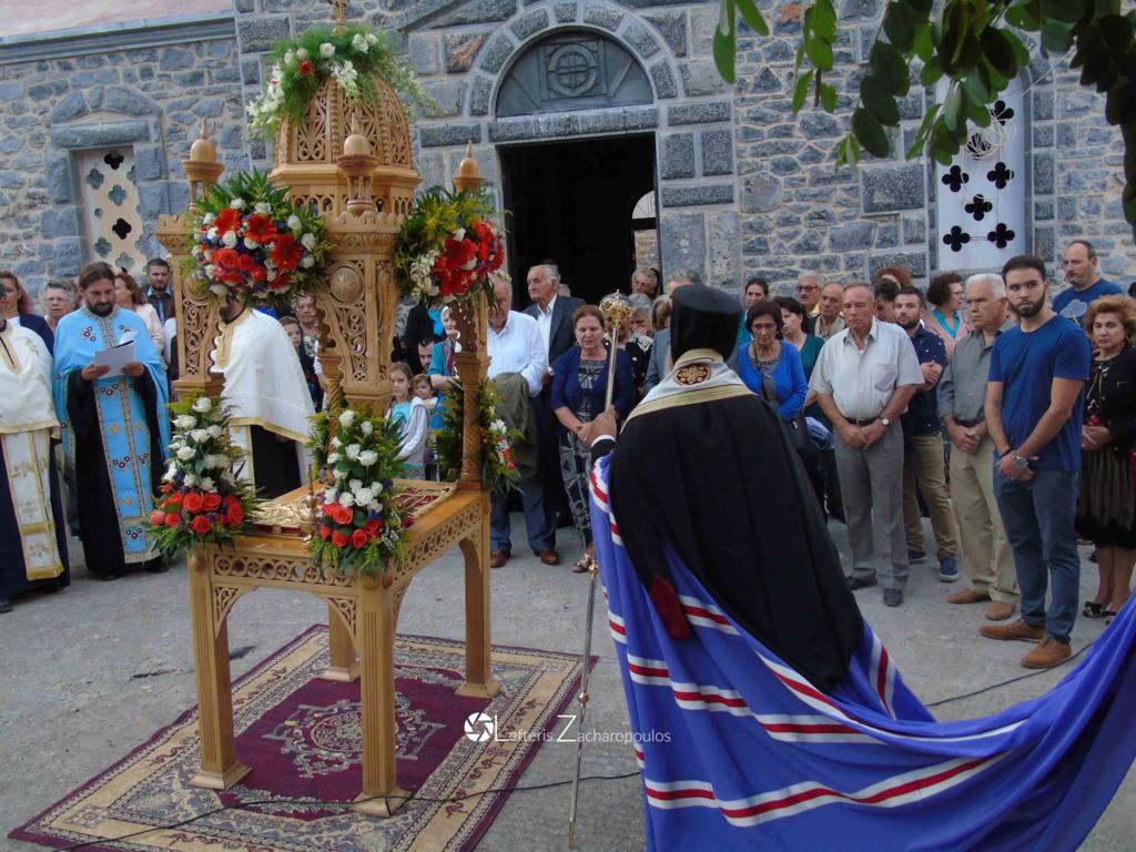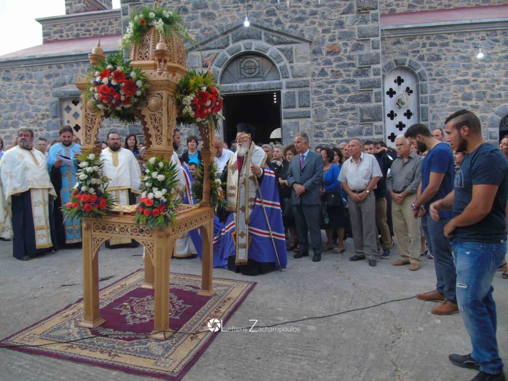 Τήν Τρίτη 22α Αὐγούστου 2017, στήν Ἀκολουθία τοῦ Ἑσπερινοῦ πρός τιμήν τῆς Παναγίας μας, προεξῆρχε ὁ Σεβ. Μητροπολίτης μας κ.κ. ΑΛΕΞΑΝΔΡΟΣ, πλαισιούμενος ἐξ εὐλαβῶν Ἱερέων τῆς Ἀρχιερατικῆς Περιφέρειας, ἐνῶ ὁ Ἱεροψάλτης κ. Νικόλαος Μπόγρης μαζί μέ τούς λοιπούς Ἱεροψάλτες ἔψαλαν μελωδικότατα τούς ὕμνους πρός τήν Παναγία μας. Πλῆθος πιστῶν συμμετεῖχε στήν κατανυκτική Ἀκολουθία τοῦ Ἑσπερινοῦ, προσφέροντας Ἀρτοκλασίες, οἱ ὁποῖες διαβάστηκαν ὑπέρ ὑγείας πάντων τῶν εὐσεβῶν καί Ὀρθοδόξων Χριστιανῶν. Συγκινητική ἦταν ἡ Ἀκολουθία τῶν Ἐγκωμίων καί ἡ περιφορά τοῦ ἱεροῦ Ἐπιταφίου της Παναγίας μας ἐκ τοῦ Ναοῦ τῆς Παναγίας τῆς Τσεμπεροῦς μέχρι καί τόν νεοανεγερθέντα Ἱερό Ναό τῶν Ἁγίων Θεοδώρων καί τοῦ παλαιοῦ προσκυνήματος τῶν Ἁγίων Θεοδώρων ἐντός τῆς μάνδρας τῆς Παναγίας Τσεμπεροῦς.