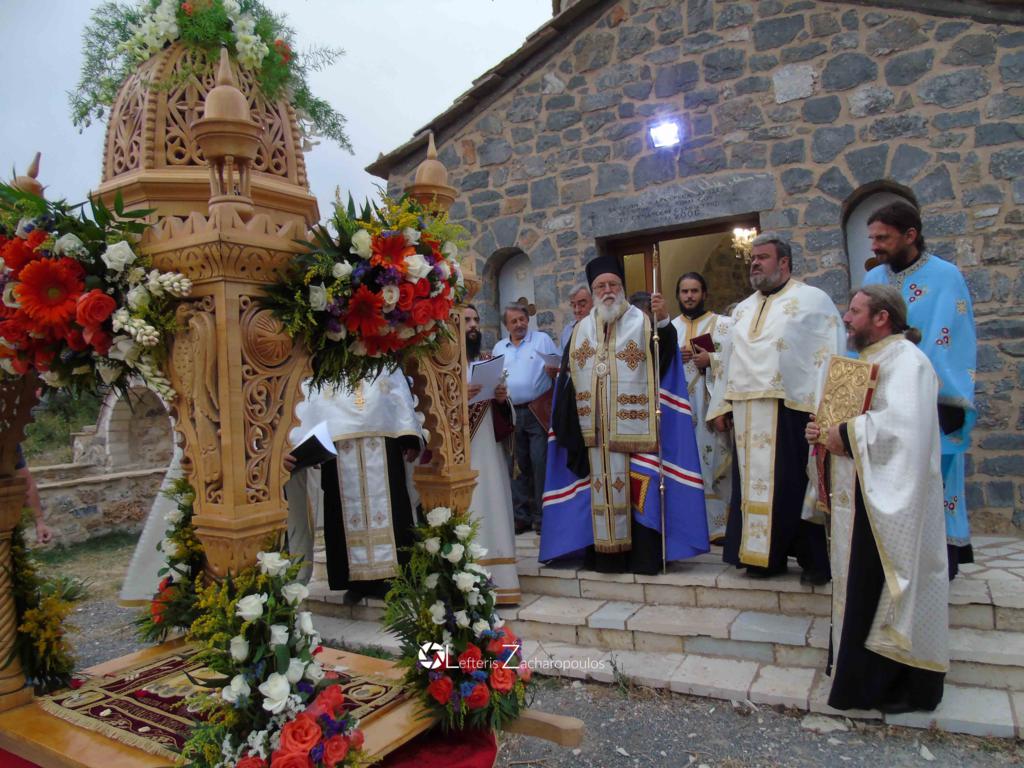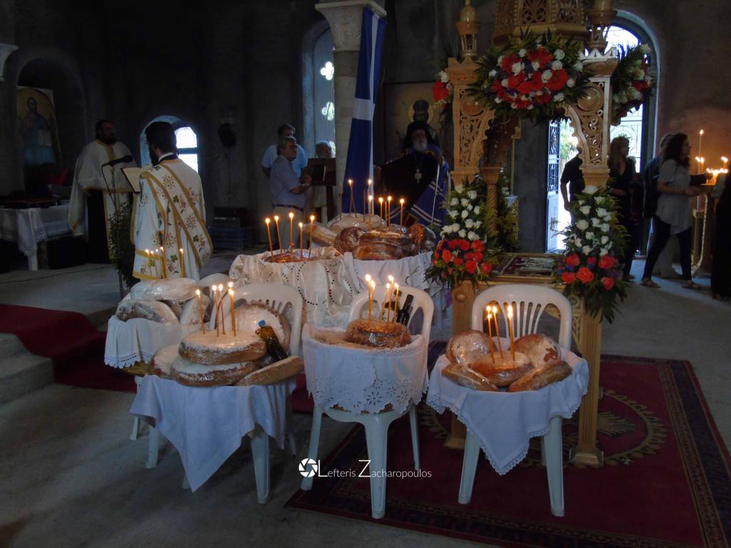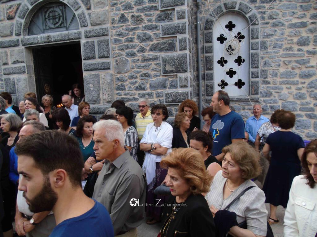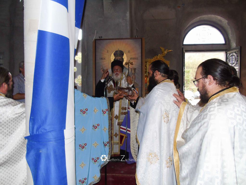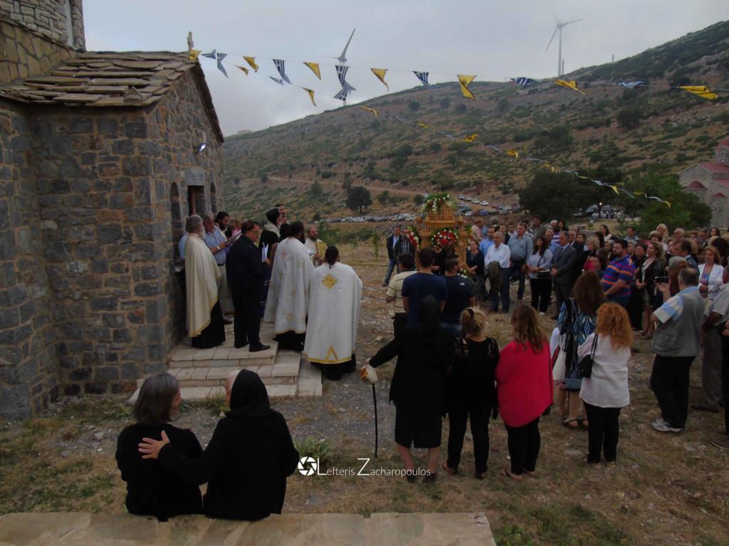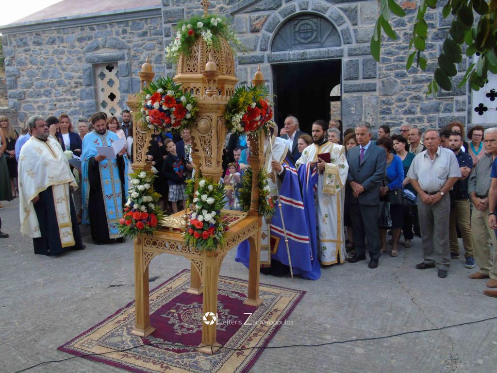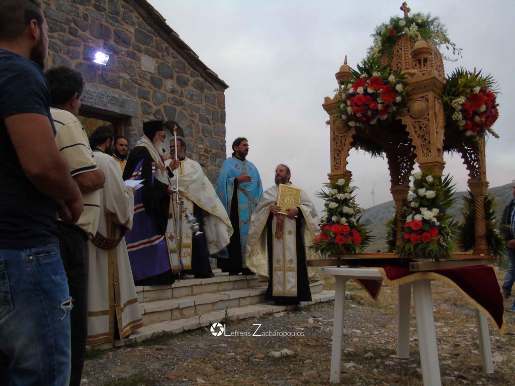 Τήν Τρίτη 22α Αὐγούστου 2017, στήν Ἀκολουθία τοῦ Ἑσπερινοῦ πρός τιμήν τῆς Παναγίας μας, προεξῆρχε ὁ Σεβ. Μητροπολίτης μας κ.κ. ΑΛΕΞΑΝΔΡΟΣ, πλαισιούμενος ἐξ εὐλαβῶν Ἱερέων τῆς Ἀρχιερατικῆς Περιφέρειας, ἐνῶ ὁ Ἱεροψάλτης κ. Νικόλαος Μπόγρης μαζί μέ τούς λοιπούς Ἱεροψάλτες ἔψαλαν μελωδικότατα τούς ὕμνους πρός τήν Παναγία μας. Πλῆθος πιστῶν συμμετεῖχε στήν κατανυκτική Ἀκολουθία τοῦ Ἑσπερινοῦ, προσφέροντας Ἀρτοκλασίες, οἱ ὁποῖες διαβάστηκαν ὑπέρ ὑγείας πάντων τῶν εὐσεβῶν καί Ὀρθοδόξων Χριστιανῶν. Συγκινητική ἦταν ἡ Ἀκολουθία τῶν Ἐγκωμίων καί ἡ περιφορά τοῦ ἱεροῦ Ἐπιταφίου της Παναγίας μας ἐκ τοῦ Ναοῦ τῆς Παναγίας τῆς Τσεμπεροῦς μέχρι καί τόν νεοανεγερθέντα Ἱερό Ναό τῶν Ἁγίων Θεοδώρων καί τοῦ παλαιοῦ προσκυνήματος τῶν Ἁγίων Θεοδώρων ἐντός τῆς μάνδρας τῆς Παναγίας Τσεμπεροῦς.