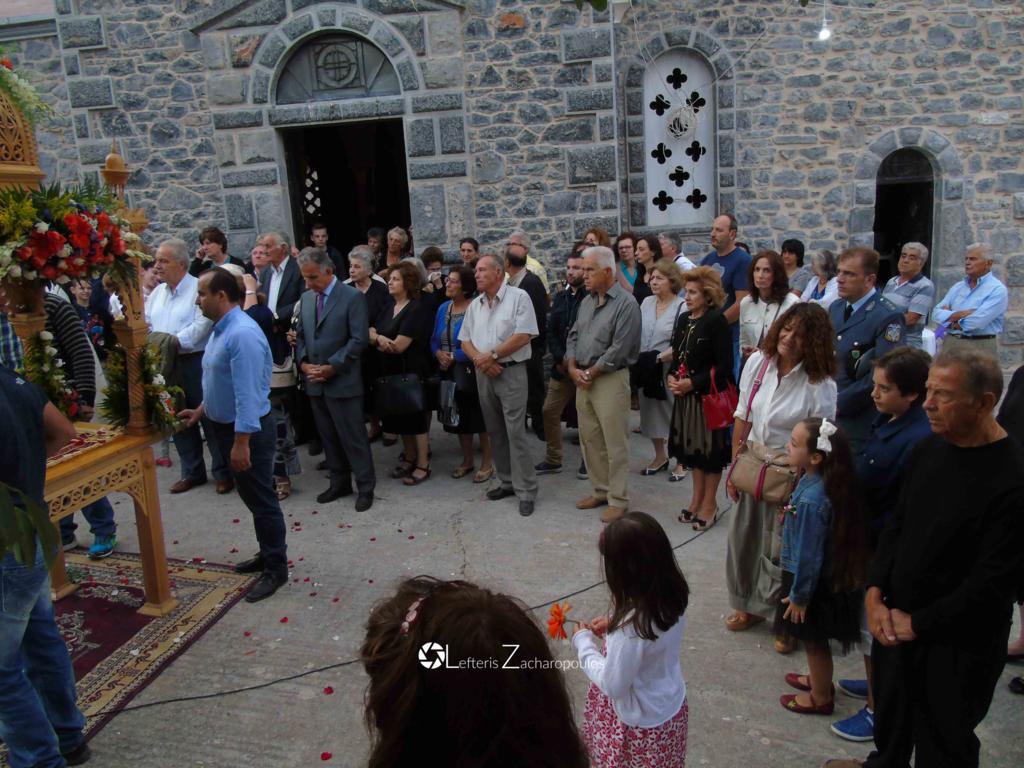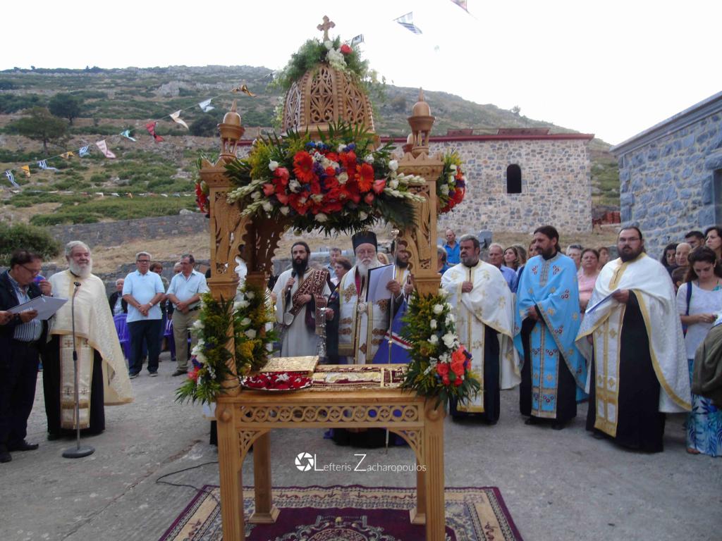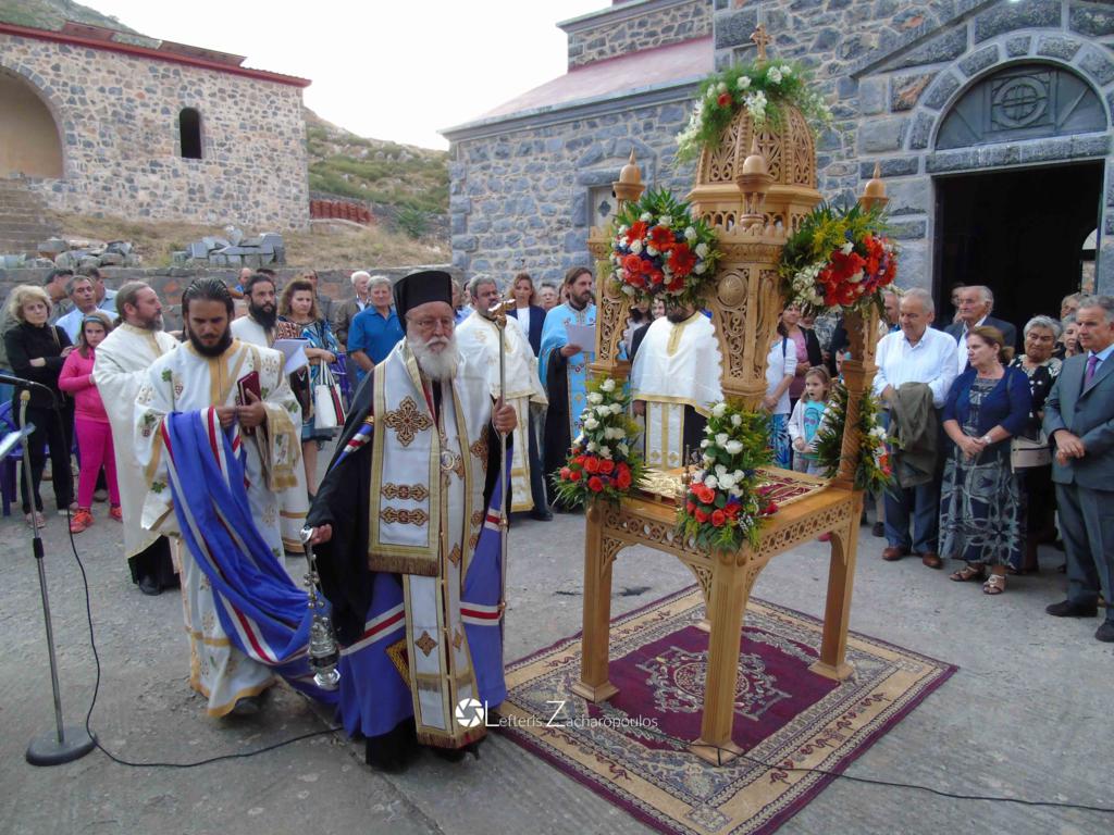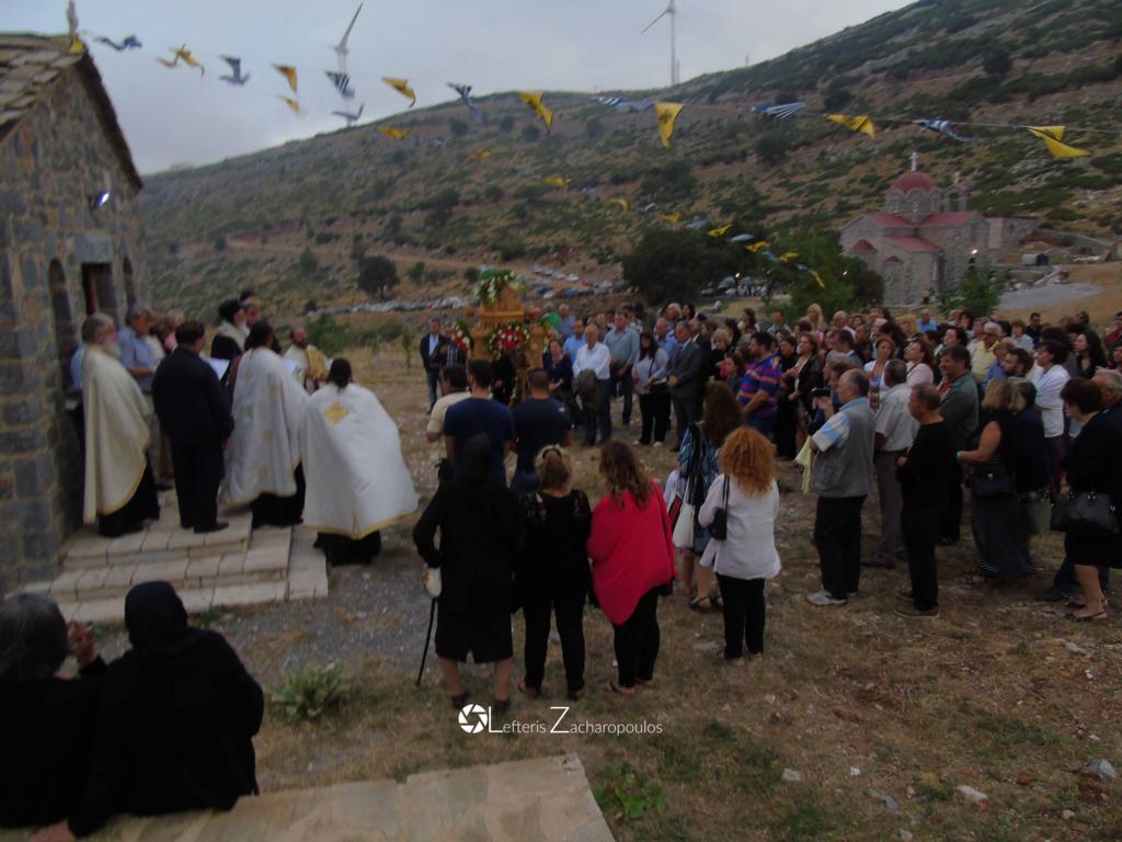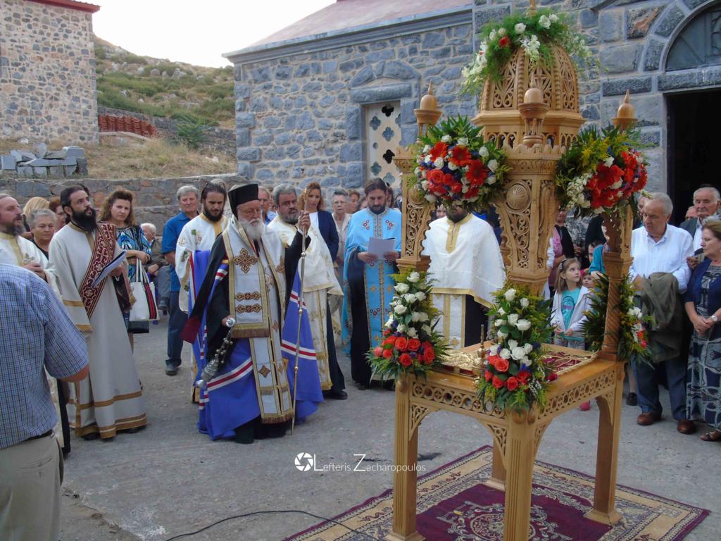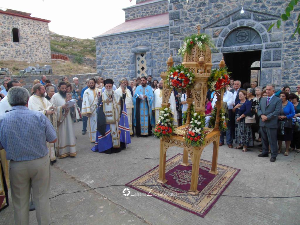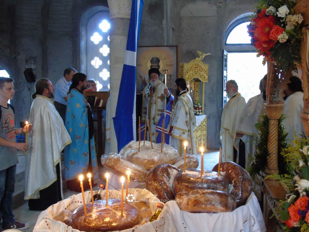 Τήν Τρίτη 22α Αὐγούστου 2017, στήν Ἀκολουθία τοῦ Ἑσπερινοῦ πρός τιμήν τῆς Παναγίας μας, προεξῆρχε ὁ Σεβ. Μητροπολίτης μας κ.κ. ΑΛΕΞΑΝΔΡΟΣ, πλαισιούμενος ἐξ εὐλαβῶν Ἱερέων τῆς Ἀρχιερατικῆς Περιφέρειας, ἐνῶ ὁ Ἱεροψάλτης κ. Νικόλαος Μπόγρης μαζί μέ τούς λοιπούς Ἱεροψάλτες ἔψαλαν μελωδικότατα τούς ὕμνους πρός τήν Παναγία μας. Πλῆθος πιστῶν συμμετεῖχε στήν κατανυκτική Ἀκολουθία τοῦ Ἑσπερινοῦ, προσφέροντας Ἀρτοκλασίες, οἱ ὁποῖες διαβάστηκαν ὑπέρ ὑγείας πάντων τῶν εὐσεβῶν καί Ὀρθοδόξων Χριστιανῶν. Συγκινητική ἦταν ἡ Ἀκολουθία τῶν Ἐγκωμίων καί ἡ περιφορά τοῦ ἱεροῦ Ἐπιταφίου της Παναγίας μας ἐκ τοῦ Ναοῦ τῆς Παναγίας τῆς Τσεμπεροῦς μέχρι καί τόν νεοανεγερθέντα Ἱερό Ναό τῶν Ἁγίων Θεοδώρων καί τοῦ παλαιοῦ προσκυνήματος τῶν Ἁγίων Θεοδώρων ἐντός τῆς μάνδρας τῆς Παναγίας Τσεμπεροῦς.