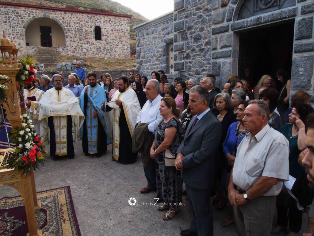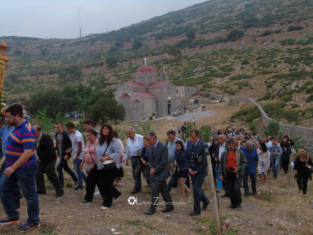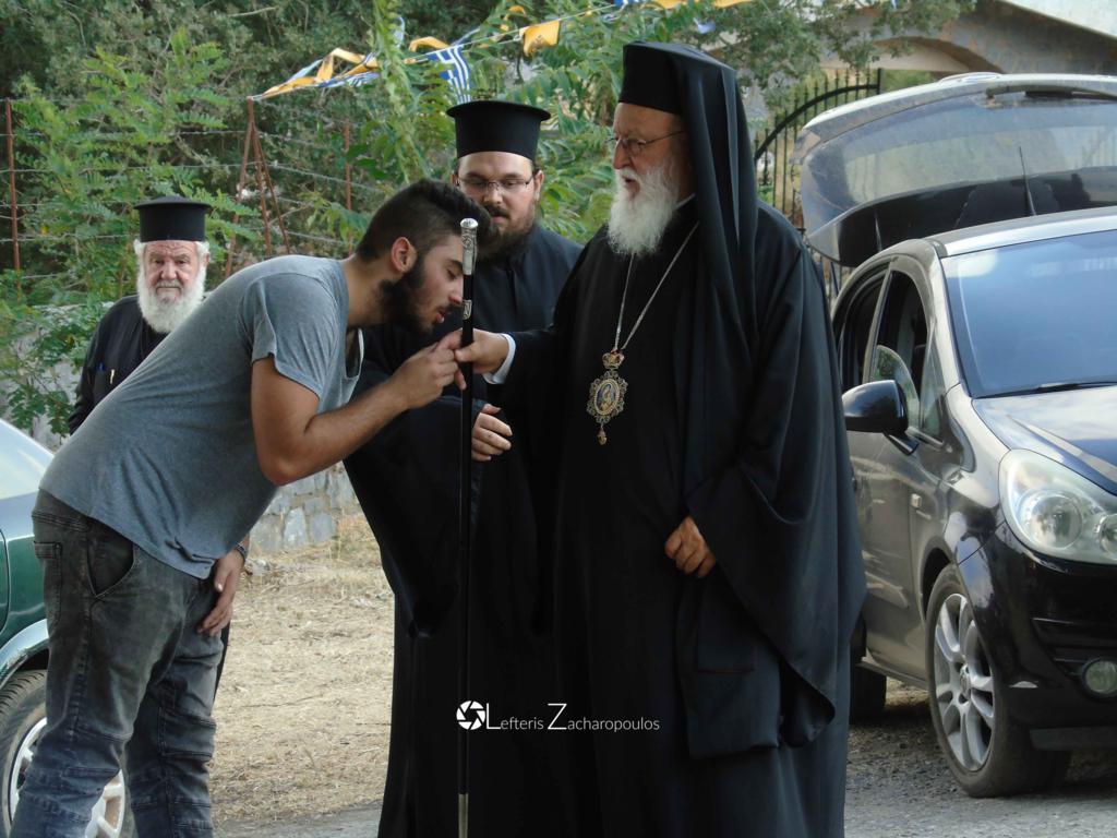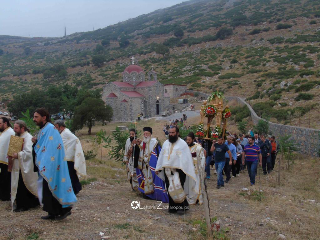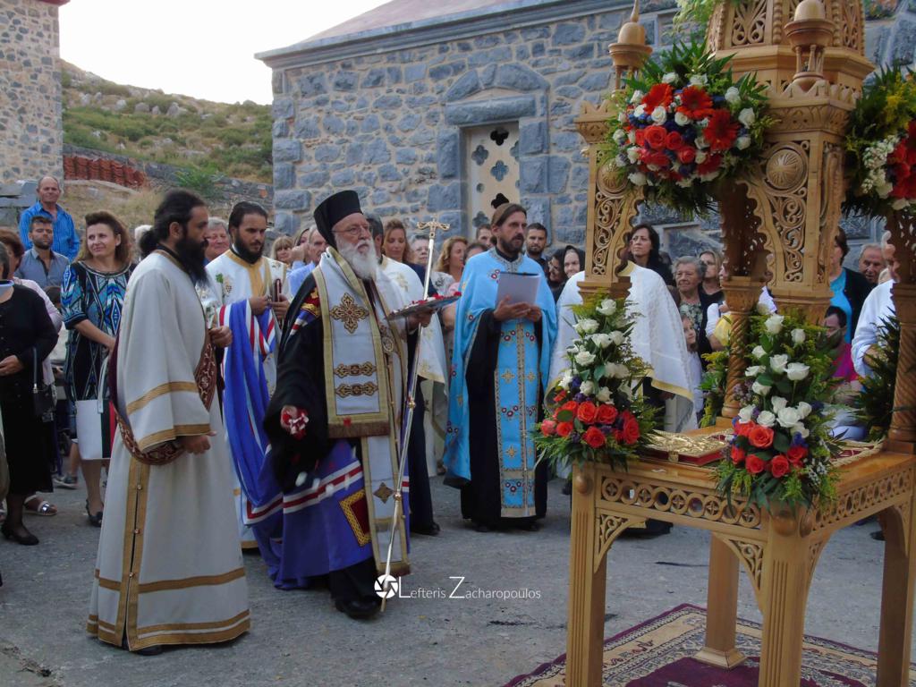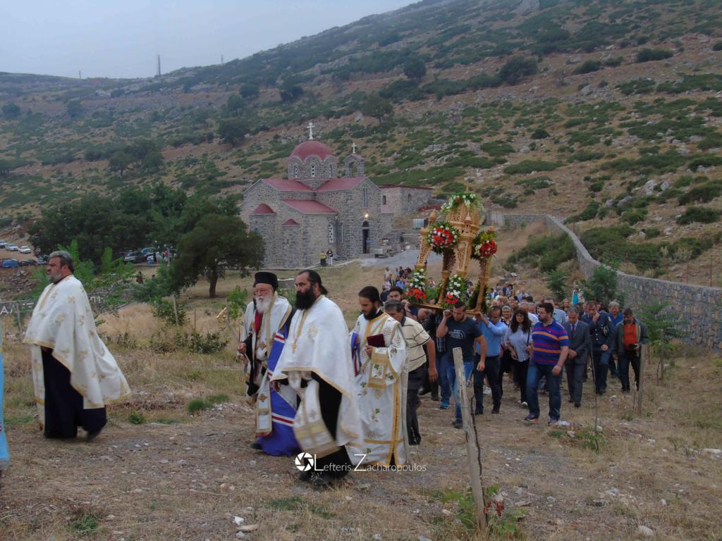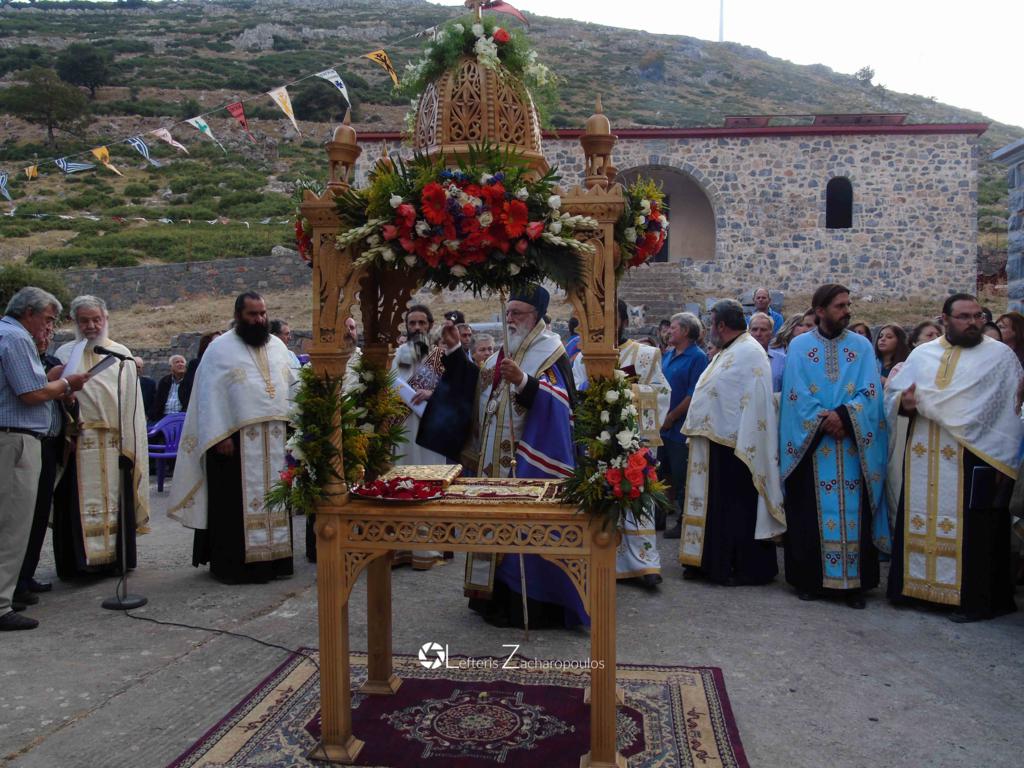 Τήν Τρίτη 22α Αὐγούστου 2017, στήν Ἀκολουθία τοῦ Ἑσπερινοῦ πρός τιμήν τῆς Παναγίας μας, προεξῆρχε ὁ Σεβ. Μητροπολίτης μας κ.κ. ΑΛΕΞΑΝΔΡΟΣ, πλαισιούμενος ἐξ εὐλαβῶν Ἱερέων τῆς Ἀρχιερατικῆς Περιφέρειας, ἐνῶ ὁ Ἱεροψάλτης κ. Νικόλαος Μπόγρης μαζί μέ τούς λοιπούς Ἱεροψάλτες ἔψαλαν μελωδικότατα τούς ὕμνους πρός τήν Παναγία μας. Πλῆθος πιστῶν συμμετεῖχε στήν κατανυκτική Ἀκολουθία τοῦ Ἑσπερινοῦ, προσφέροντας Ἀρτοκλασίες, οἱ ὁποῖες διαβάστηκαν ὑπέρ ὑγείας πάντων τῶν εὐσεβῶν καί Ὀρθοδόξων Χριστιανῶν. Συγκινητική ἦταν ἡ Ἀκολουθία τῶν Ἐγκωμίων καί ἡ περιφορά τοῦ ἱεροῦ Ἐπιταφίου της Παναγίας μας ἐκ τοῦ Ναοῦ τῆς Παναγίας τῆς Τσεμπεροῦς μέχρι καί τόν νεοανεγερθέντα Ἱερό Ναό τῶν Ἁγίων Θεοδώρων καί τοῦ παλαιοῦ προσκυνήματος τῶν Ἁγίων Θεοδώρων ἐντός τῆς μάνδρας τῆς Παναγίας Τσεμπεροῦς.