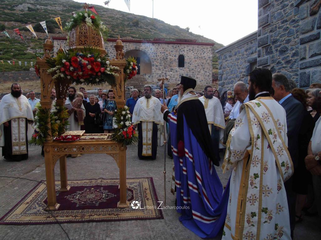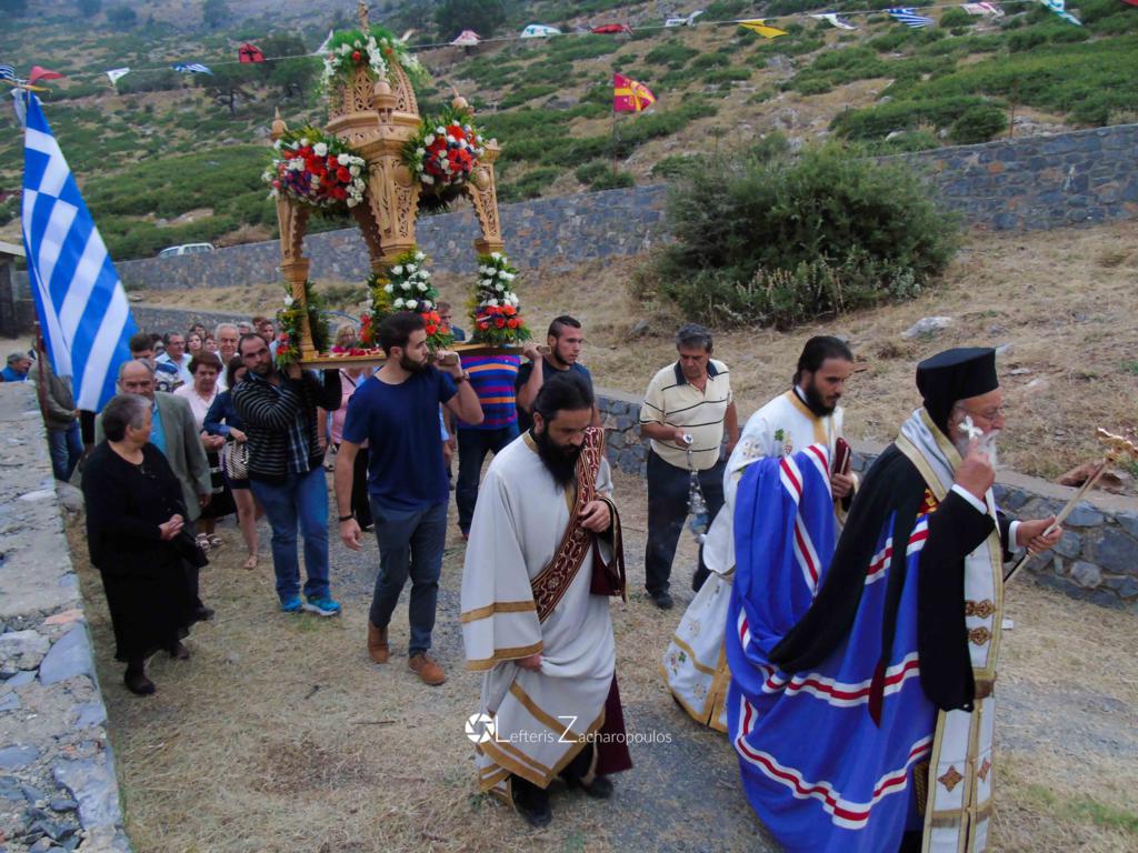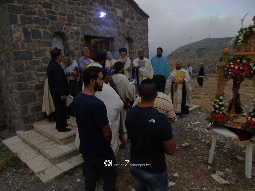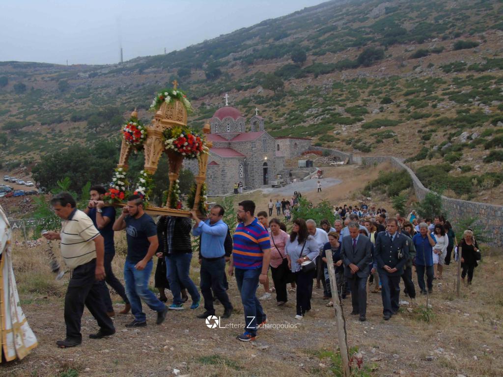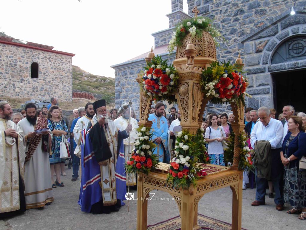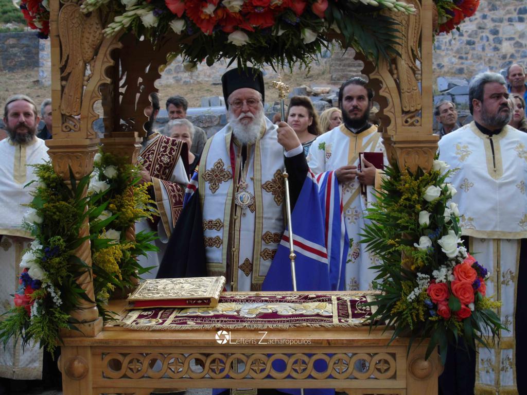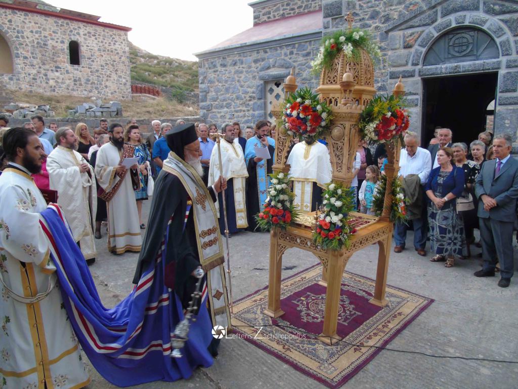 Τήν Τρίτη 22α Αὐγούστου 2017, στήν Ἀκολουθία τοῦ Ἑσπερινοῦ πρός τιμήν τῆς Παναγίας μας, προεξῆρχε ὁ Σεβ. Μητροπολίτης μας κ.κ. ΑΛΕΞΑΝΔΡΟΣ, πλαισιούμενος ἐξ εὐλαβῶν Ἱερέων τῆς Ἀρχιερατικῆς Περιφέρειας, ἐνῶ ὁ Ἱεροψάλτης κ. Νικόλαος Μπόγρης μαζί μέ τούς λοιπούς Ἱεροψάλτες ἔψαλαν μελωδικότατα τούς ὕμνους πρός τήν Παναγία μας. Πλῆθος πιστῶν συμμετεῖχε στήν κατανυκτική Ἀκολουθία τοῦ Ἑσπερινοῦ, προσφέροντας Ἀρτοκλασίες, οἱ ὁποῖες διαβάστηκαν ὑπέρ ὑγείας πάντων τῶν εὐσεβῶν καί Ὀρθοδόξων Χριστιανῶν. Συγκινητική ἦταν ἡ Ἀκολουθία τῶν Ἐγκωμίων καί ἡ περιφορά τοῦ ἱεροῦ Ἐπιταφίου της Παναγίας μας ἐκ τοῦ Ναοῦ τῆς Παναγίας τῆς Τσεμπεροῦς μέχρι καί τόν νεοανεγερθέντα Ἱερό Ναό τῶν Ἁγίων Θεοδώρων καί τοῦ παλαιοῦ προσκυνήματος τῶν Ἁγίων Θεοδώρων ἐντός τῆς μάνδρας τῆς Παναγίας Τσεμπεροῦς.