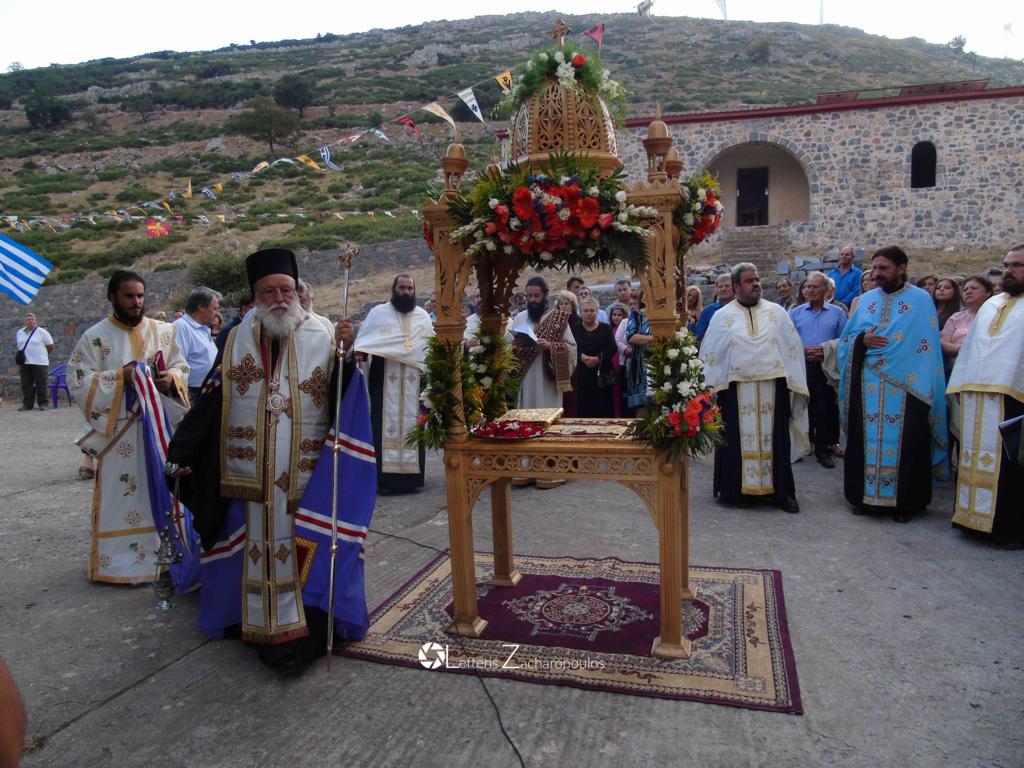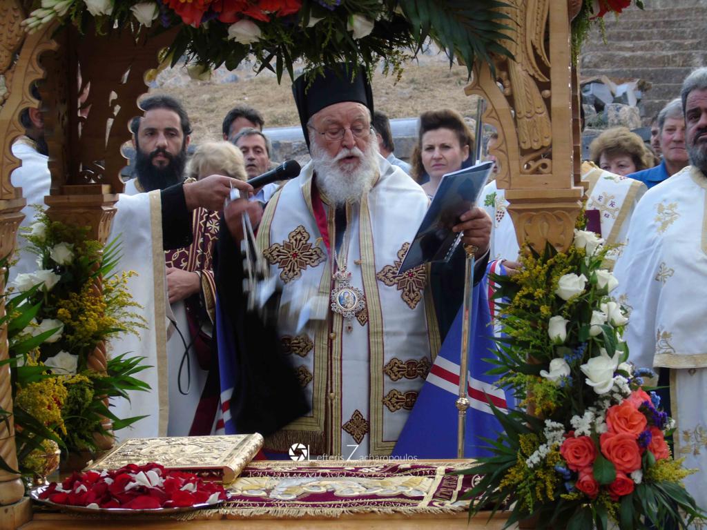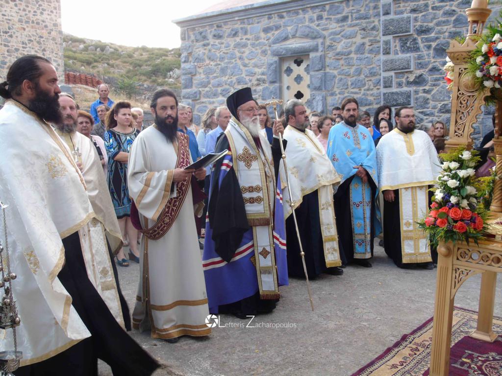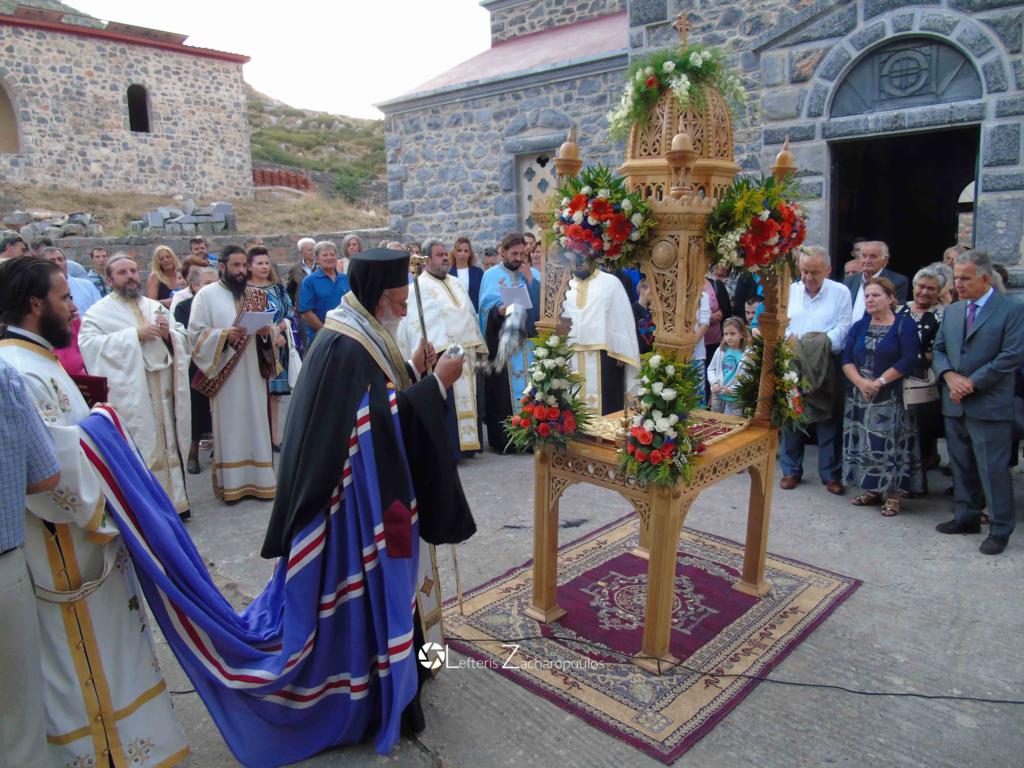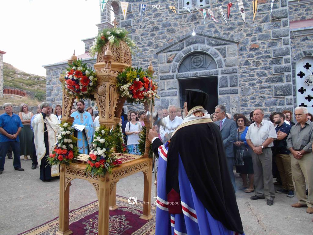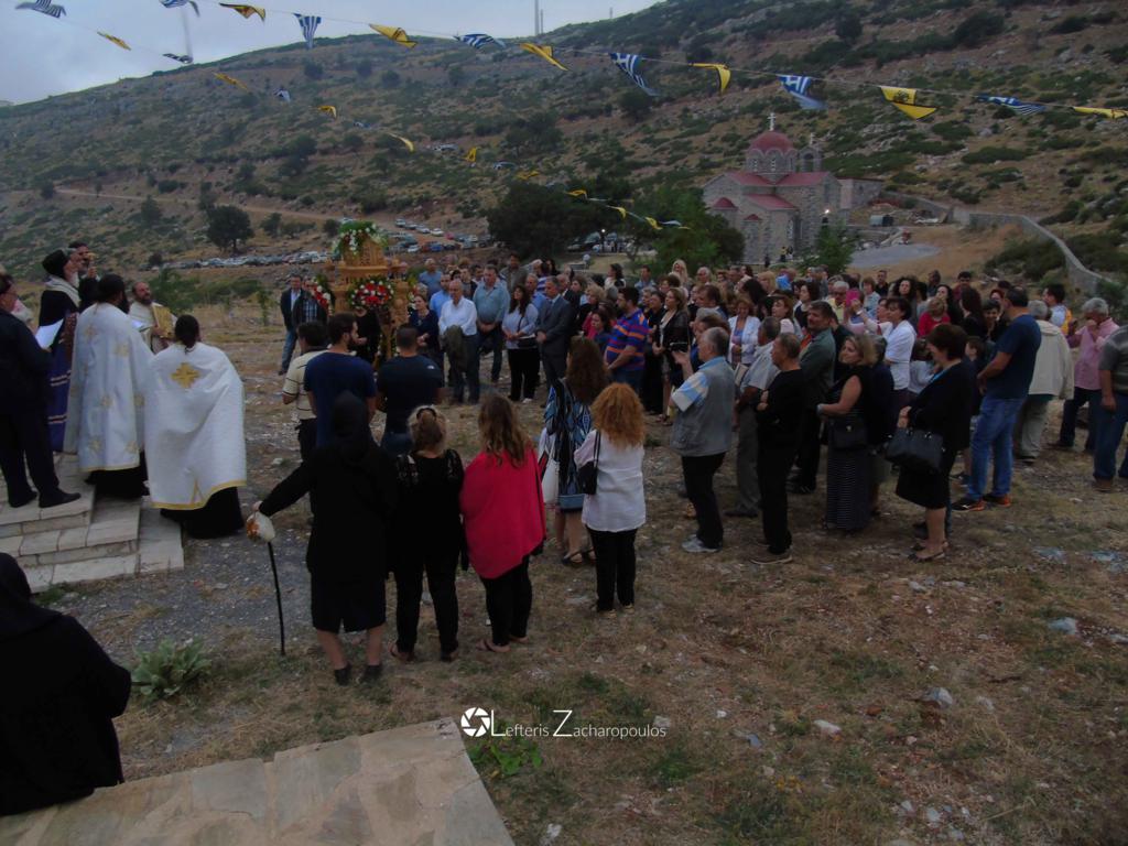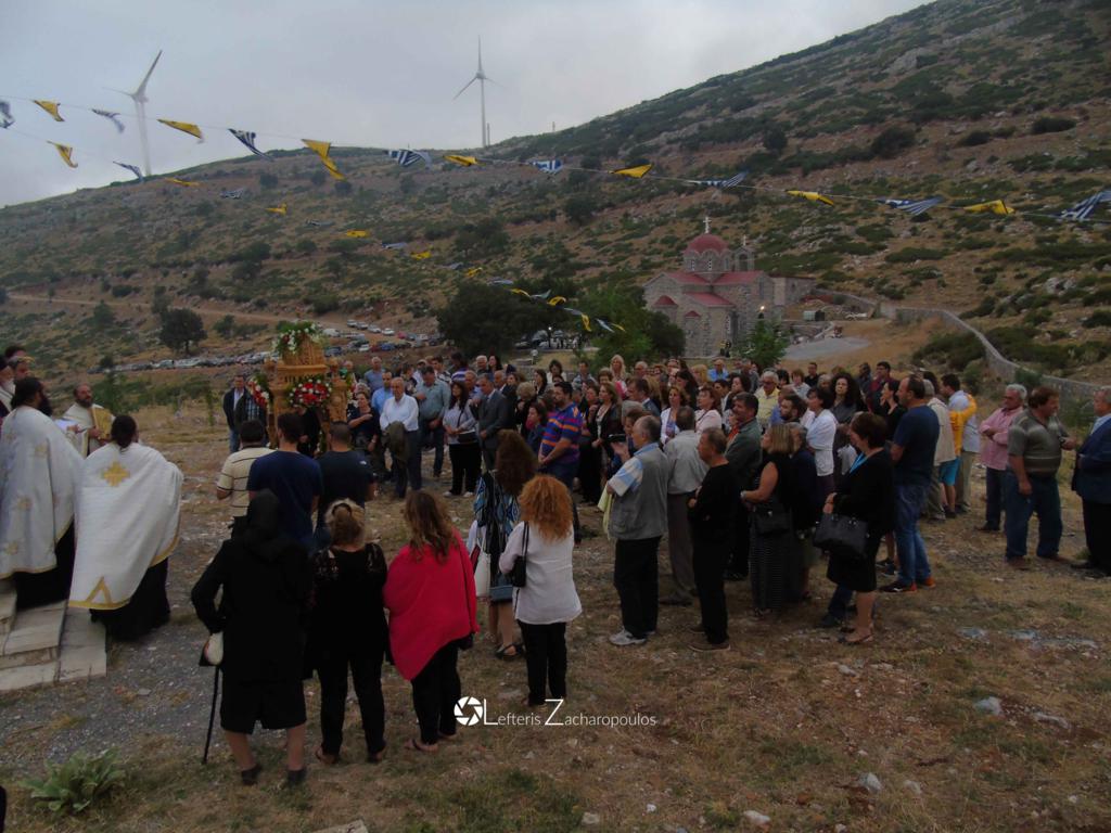 Τήν Τρίτη 22α Αὐγούστου 2017, στήν Ἀκολουθία τοῦ Ἑσπερινοῦ πρός τιμήν τῆς Παναγίας μας, προεξῆρχε ὁ Σεβ. Μητροπολίτης μας κ.κ. ΑΛΕΞΑΝΔΡΟΣ, πλαισιούμενος ἐξ εὐλαβῶν Ἱερέων τῆς Ἀρχιερατικῆς Περιφέρειας, ἐνῶ ὁ Ἱεροψάλτης κ. Νικόλαος Μπόγρης μαζί μέ τούς λοιπούς Ἱεροψάλτες ἔψαλαν μελωδικότατα τούς ὕμνους πρός τήν Παναγία μας. Πλῆθος πιστῶν συμμετεῖχε στήν κατανυκτική Ἀκολουθία τοῦ Ἑσπερινοῦ, προσφέροντας Ἀρτοκλασίες, οἱ ὁποῖες διαβάστηκαν ὑπέρ ὑγείας πάντων τῶν εὐσεβῶν καί Ὀρθοδόξων Χριστιανῶν. Συγκινητική ἦταν ἡ Ἀκολουθία τῶν Ἐγκωμίων καί ἡ περιφορά τοῦ ἱεροῦ Ἐπιταφίου της Παναγίας μας ἐκ τοῦ Ναοῦ τῆς Παναγίας τῆς Τσεμπεροῦς μέχρι καί τόν νεοανεγερθέντα Ἱερό Ναό τῶν Ἁγίων Θεοδώρων καί τοῦ παλαιοῦ προσκυνήματος τῶν Ἁγίων Θεοδώρων ἐντός τῆς μάνδρας τῆς Παναγίας Τσεμπεροῦς.