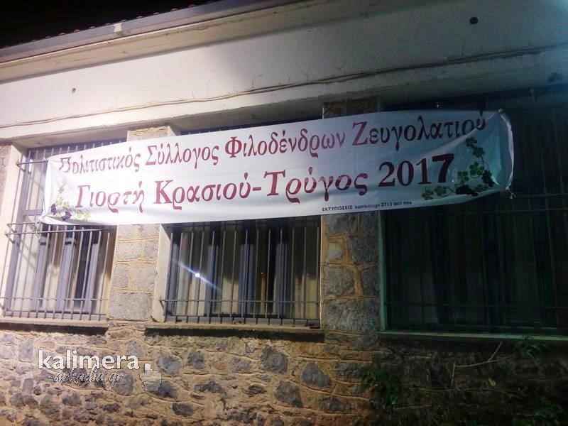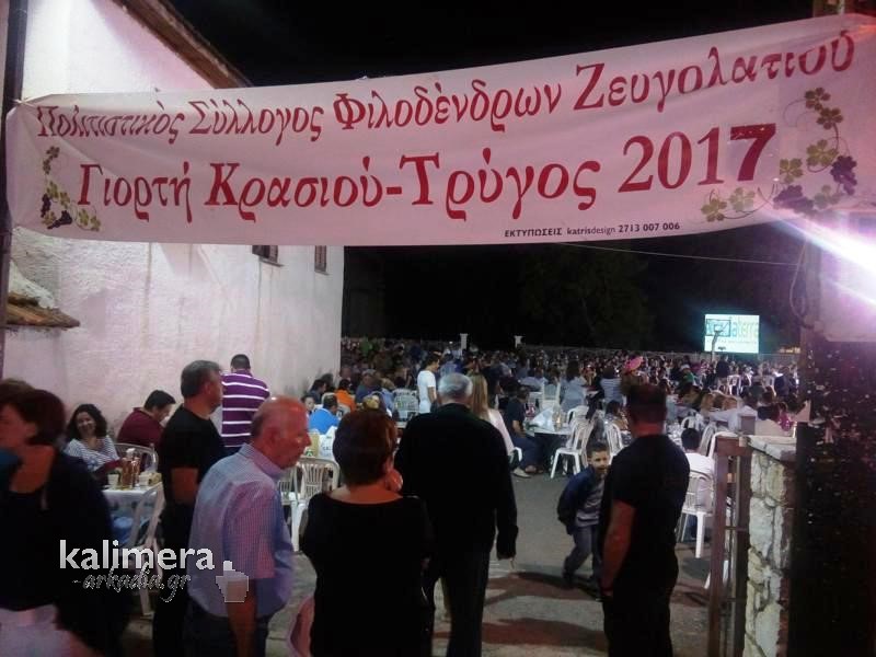 O Πολιτιστικός Σύλλογος Φιλοδένδρων Ζευγολατιού σε συνεργασία με το Δήμο Τρίπολης και με την ευγενική χορηγία της περιφέρειας Πελοποννήσου διοργανώνει και φέτος την εκδήλωση '' Γιορτή Κρασιού 2017''.
