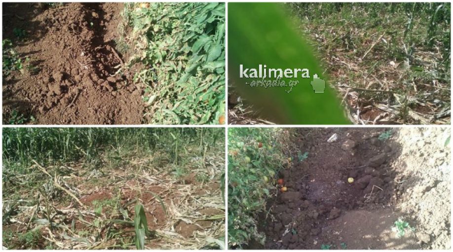 Αγριογούρουνα κατέστρεψαν καλλιέργειες με ντομάτες και καλαμπόκια στην Κανδήλα (εικόνες)