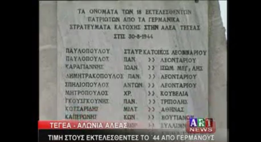 Αλέα Τεγέας | Τιμή για τους Έλληνες εκτελεσθέντες από τους Ναζί (vd)