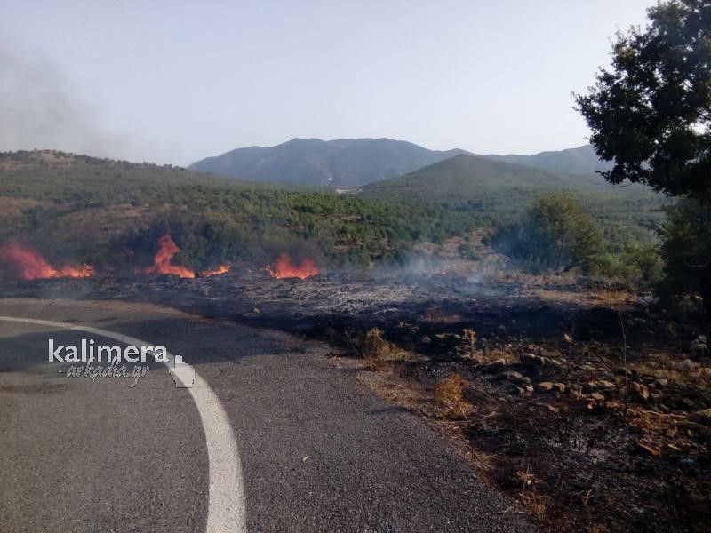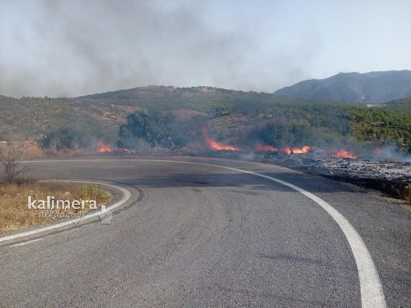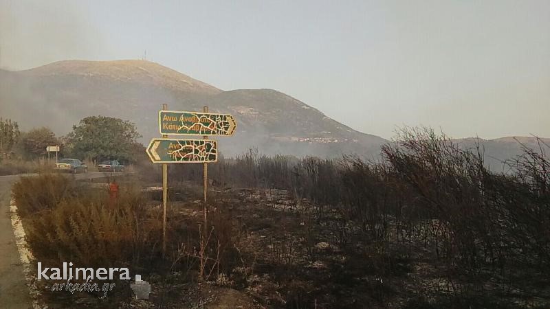Επιπλέον, αεροσκάφη έκαναν συνεχώς ρίψεις νερού, μέχρι αργά το απόγευμα, ενώ υδροφόρες του Δήμου Μεγαλόπολης και του Δήμου Τρίπολης (με επικεφαλής τον Αντιδήμαρχο Παπαδημητρίου και δύο ακόμα μικρά πυροσβεστικά οχήματα) ήταν εκεί.