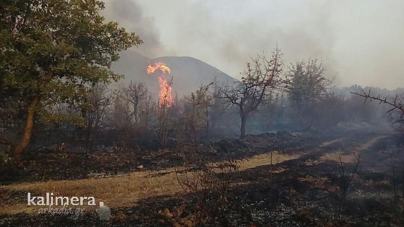 Μεγάλες φωτιές ξέσπασαν τη Δευτέρα το απόγευμα στη Φαλαισία. Το ένα μέτωπο ήταν κοντά στο χωριό Βουτσαράς που πέρασε κοντά από τα σπίτια και επεκτάθηκε στη συνέχεια προς Ανεμοδούρι και Ρούτσι και το άλλο κάτω από το Μοναστήρι Μπούρα.