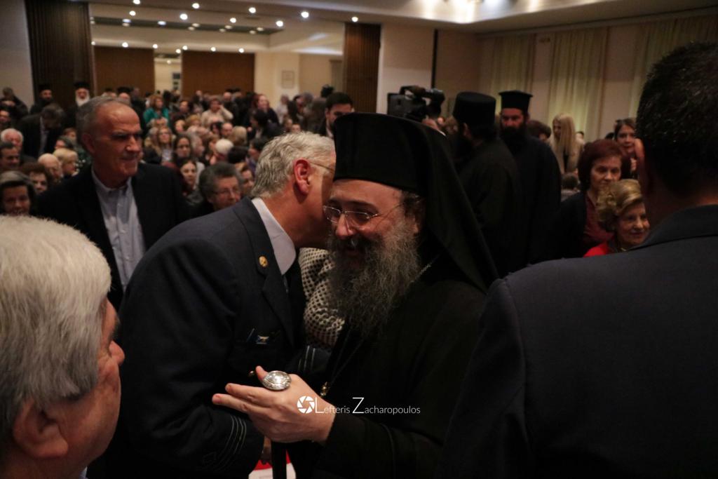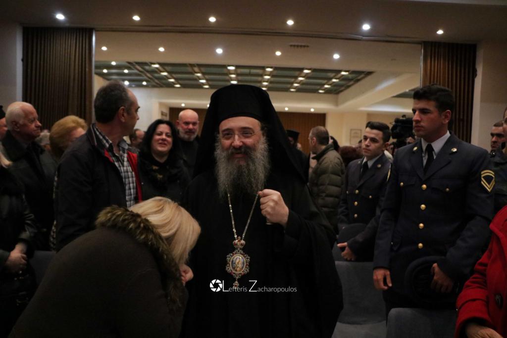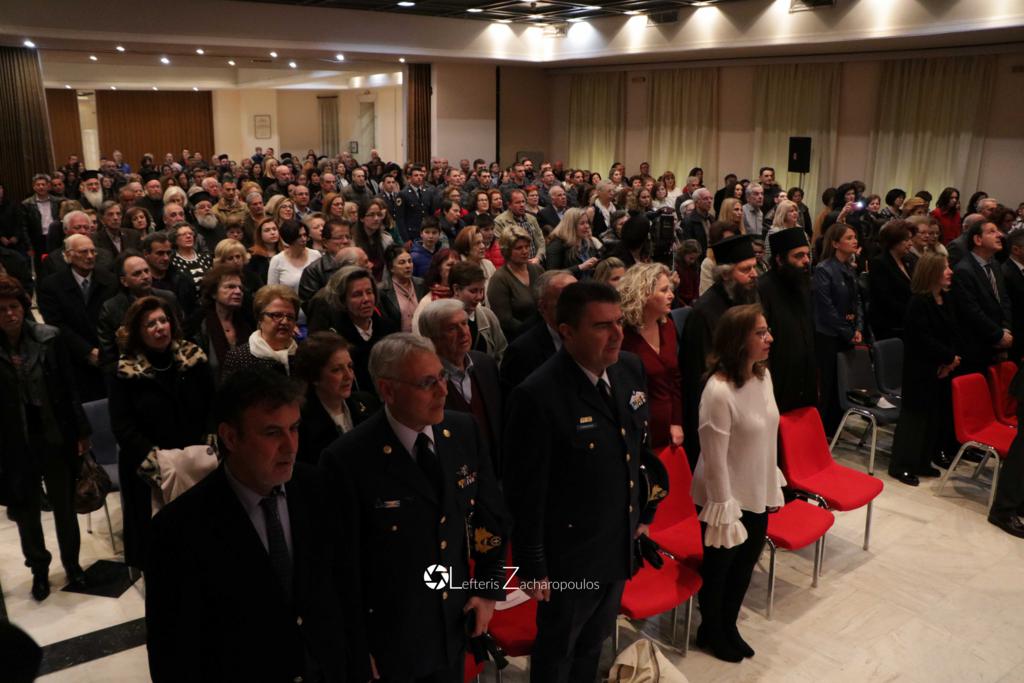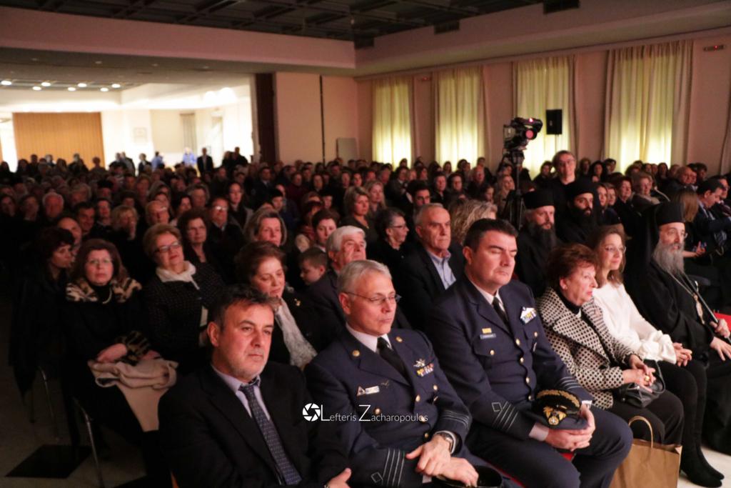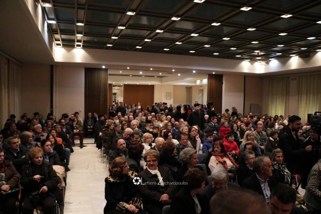 Στήν κατάμεστη αἴθουσα τοῦ Πνευματικοῦ Κέντρου, ἐκτός τοῦ Λαοῦ τῆς Τριπόλεως, προσῆλθαν ἐπίσημοι καί ἐκπρόσωποι τῶν πολιτικῶν καί στρατιωτικῶν ἀρχῶν.
