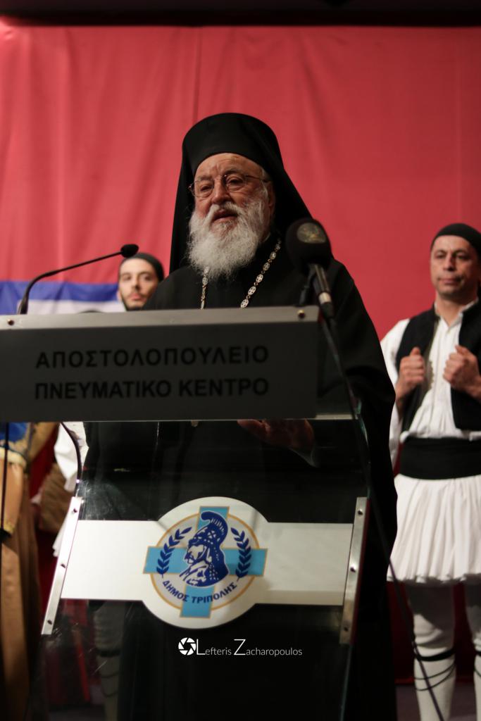 Τό Σάββατο ἑσπέρας τῆς 17ης Μαρτίου 2018 στό Ἀποστολοπούλειο Πνευματικό Κέντρο τοῦ Δήμου Τριπόλεως ἡ Ἱερά Μητρόπολις Μαντινείας καί Κυνουρίας καί τό Λύκειο Ἑλληνίδων Τριπόλεως συνδιοργάνωσαν ἐκδήλωση γιά τόν ἑορτασμό τῆς ἐπετείου τῆς Ἐπαναστάσεως τῆς 25ης Μαρτίου τοῦ 1821, μέ τίτλο: «Ἡ Ἐκκλησία καί τό θαῦμα τοῦ 1821».