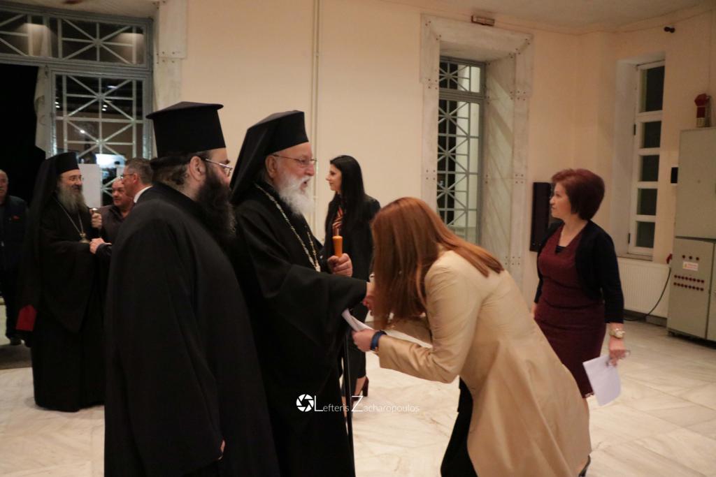 Τέλος, ἡ Πρόεδρος τοῦ Λυκείου Ἑλληνίδων Τριπόλεως, εὐχαρίστησε τούς παρευρισκομένους καί ἀπένειμε τιμητικές πλακέτες στούς δύο Μητροπολίτες καί στό Λύκειο Ἑλληνίδων Πατρῶν.