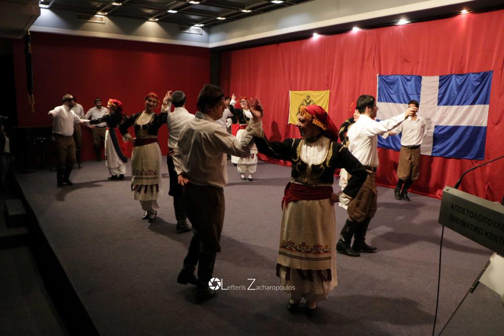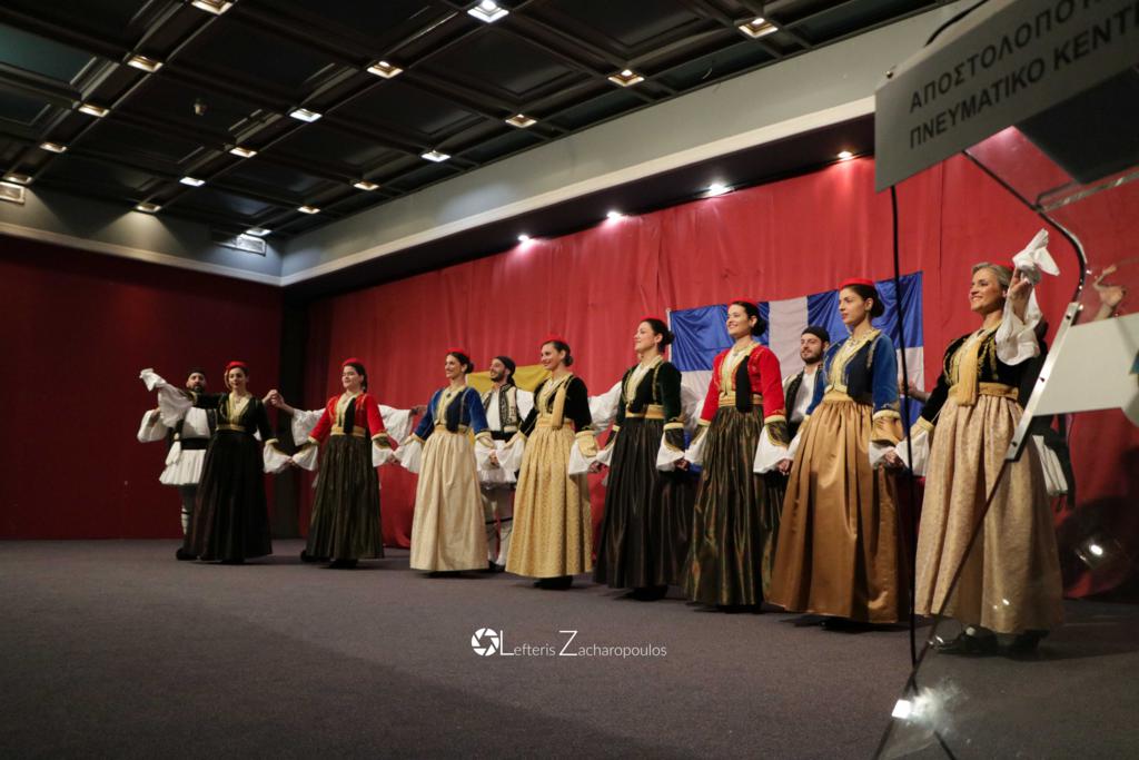 Ἡ ἐκδήλωση περιελάμβανε δύο μέρη. Στό ἕνα κεντρικός ὁμιλητής ἦταν ὁ Ἀρκάς Μητροπολίτης Πατρῶν κ.κ. Χρυσόστομος Σκλήφας, ἀναπτύσσοντας τό θέμα: «Ἡ προσφορά τῆς Ὀρθοδόξου Ἐκκλησίας, τοῦ Κλήρου καί τῶν Μοναχῶν στήν Παλιγγενεσία τοῦ Ἔθνους τοῦ 1821». Στό ἄλλο μέρος τά χορευτικά τμήματα τοῦ Λυκείου Ἑλληνίδων Πατρῶν καί Τριπόλεως χόρεψαν παραδοσιακούς χορούς.