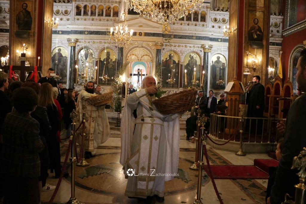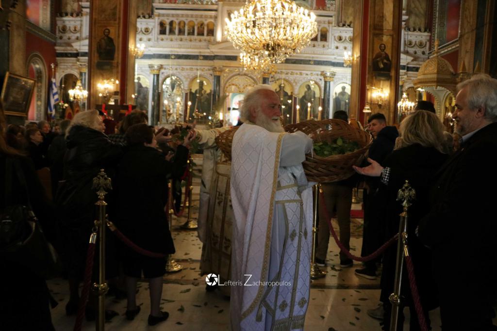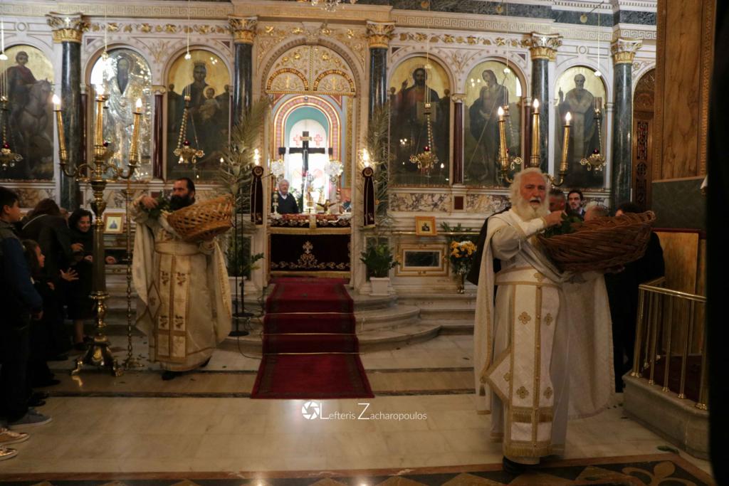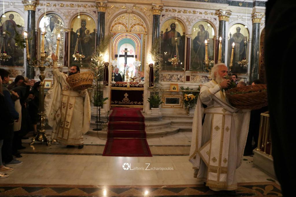 Πιστοί έψαλαν το «Ἀνάστα ὁ Θεός», λαμβάνοντας από τους ιερείς βάγια και λουλούδια, τα οποία είναι τα μαρτυρικά της πρώτης Αναστάσεως.