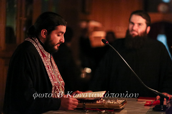 Την Ιερά Αγρυπνία τέλεσε ο Πανοσιολ. Αρχιμ. π. Γερμανός Μίχος, συνεπικουρούμενος και από άλλους κληρικούς, ο οποίος και κήρυξε τον Θείο Λόγο.