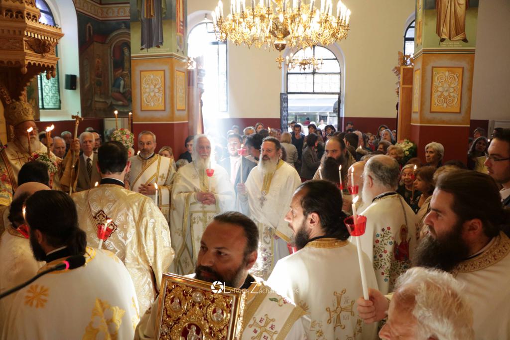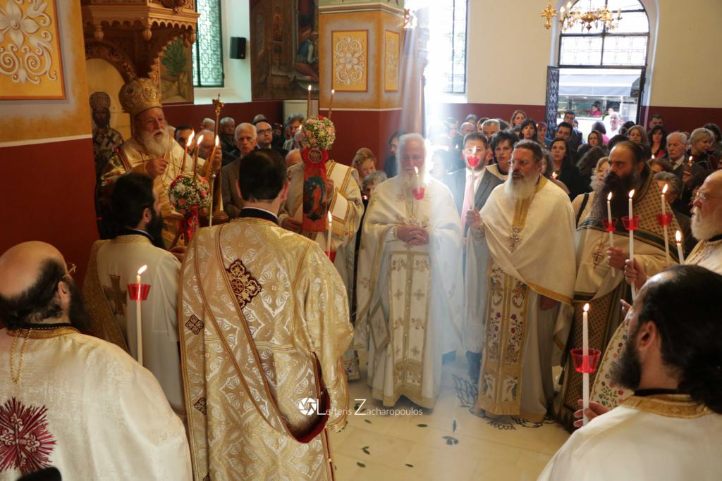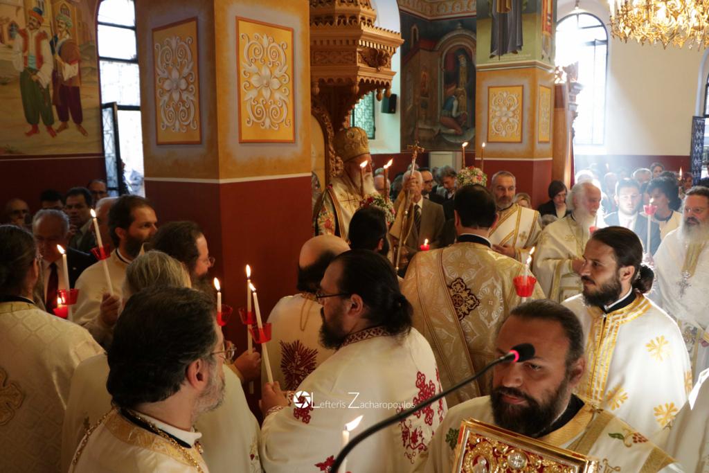 Τό ἑσπέρας τῆς Κυριακῆς τοῦ Ἁγίου Πάσχα, 8 Ἀπριλίου 2018, ὁ Σεβασμιώτατος Μητροπολίτης Μαντινείας καί Κυνουρίας κ.κ. ΑΛΕΞΑΝΔΡΟΣ, τέλεσε τήν Ἀκολουθία τοῦ Ἑσπερινοῦ τῆς Ἀγάπης στόν Προσκυνηματικό Ἱερό Ναό Νεομάρτυρος Παύλου Τριπόλεως, περιστοιχισμένος ἀπό Κληρικούς τῆς Μητροπόλεως μας καί μέ τήν παρουσία πλήθους πιστῶν, μέ τούς ὁποίους καί ἀντάλλαξε ἀναστάσιμες εὐχές. Προηγήθηκε κατά τήν ἀρχαία τάξη ἡ συγκέντρωση τοῦ ἱεροῦ Κλήρου στό Ἐπισκοπεῖο τῆς Μητροπόλεως, ἡ ἔνδυση τοῦ Ἀρχιερέως καί τοῦ ἱεροῦ Κλήρου ἐκεῖ καί ἡ μετάβαση ἐν πομπῇ στόν Ναό γιά τήν τέλεση τῆς Ἀκολουθίας. Στό τέλος ὁ Μητροπολίτης μετά τοῦ ἱεροῦ Κλήρου ἐπέστρεψε πάλι ἐν πομπῇ στό Ἐπισκοπεῖο, ὅπου προσέφερε εἰς ἕνα ἕκαστον τῶν πιστῶν πασχαλινό αὐγό, ὡς εὐλογία καὶ σύμβολο τῆς Ἀναστάσεως.