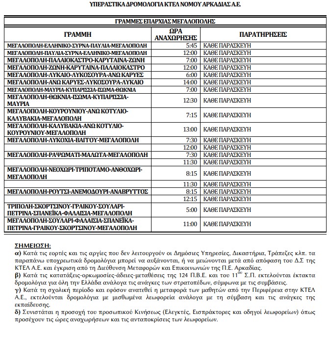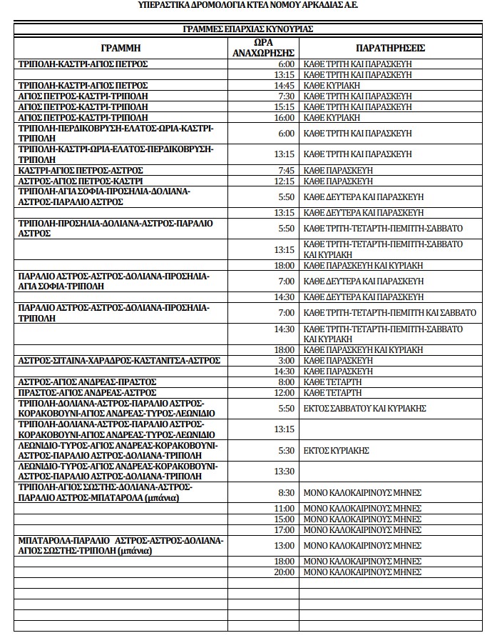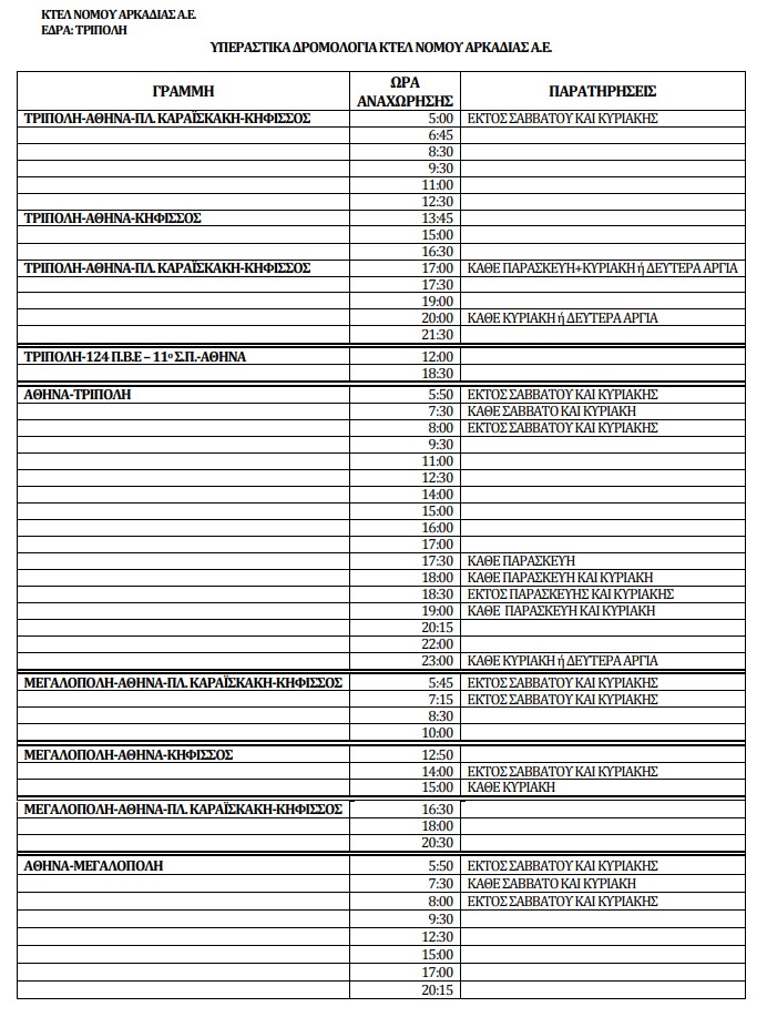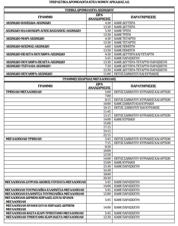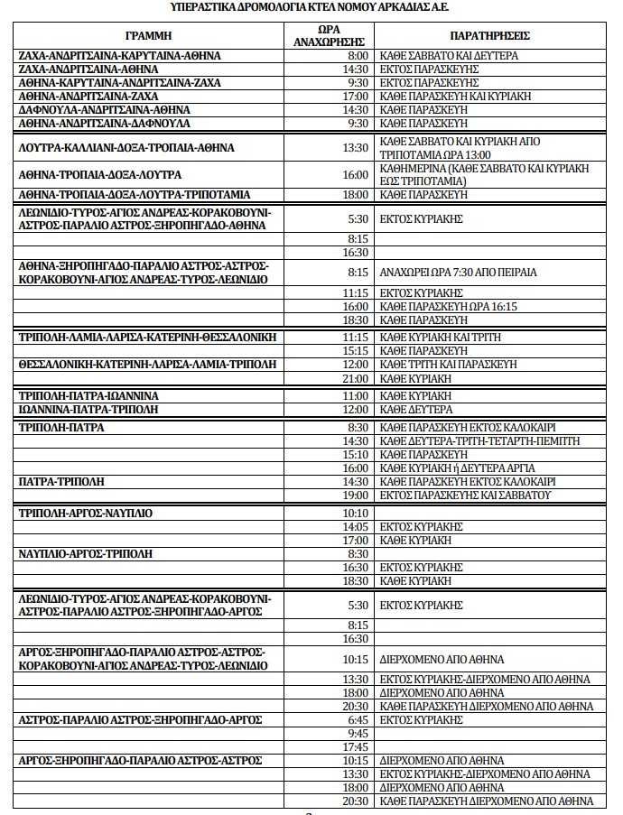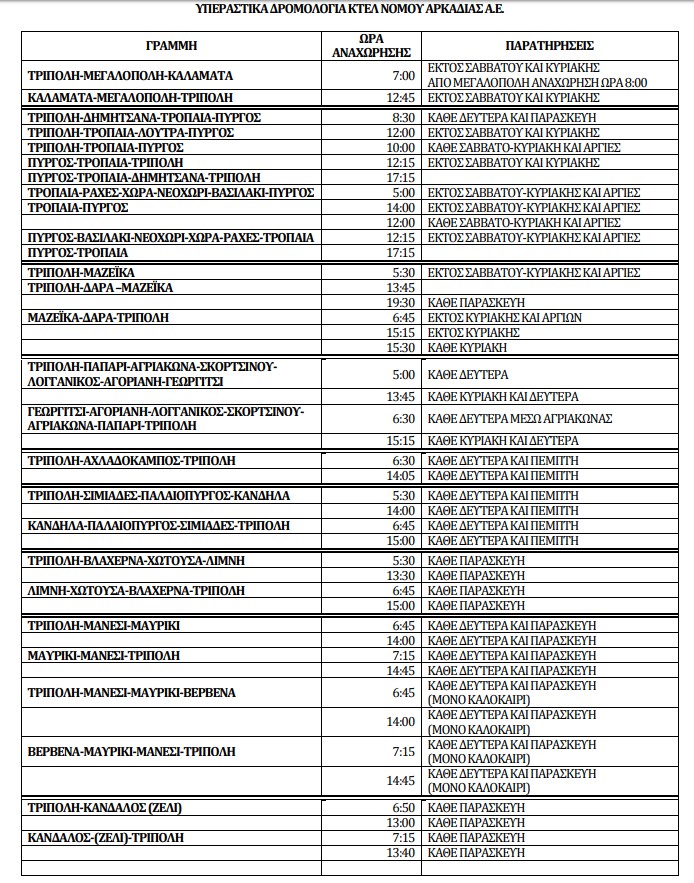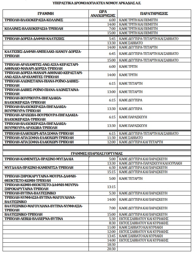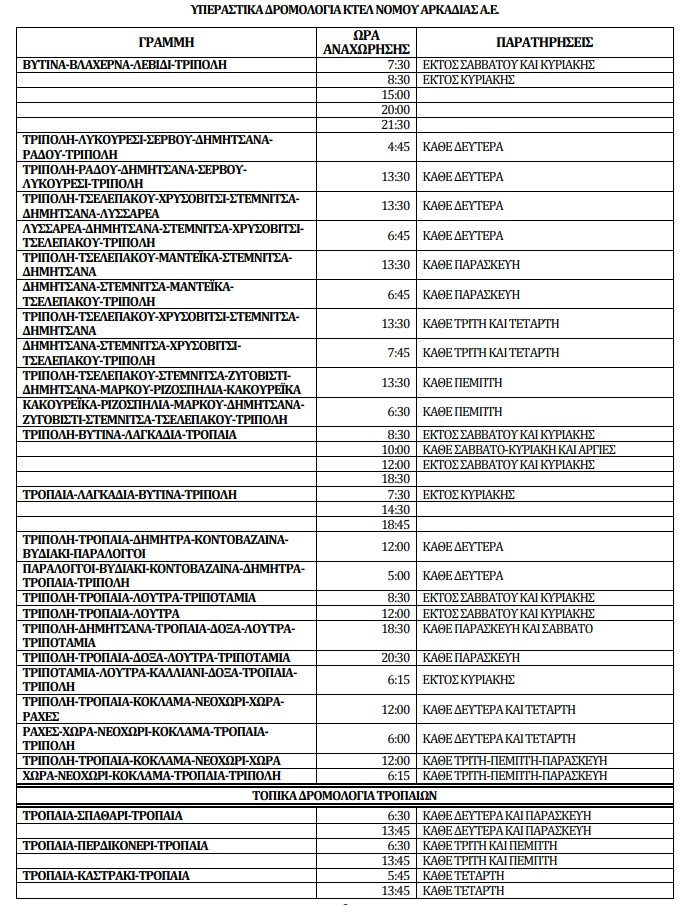 Τους πίνακες με τα δρομολόγια φέρνει στη δημοσιότητα το «Καλημέρα Αρκαδία».