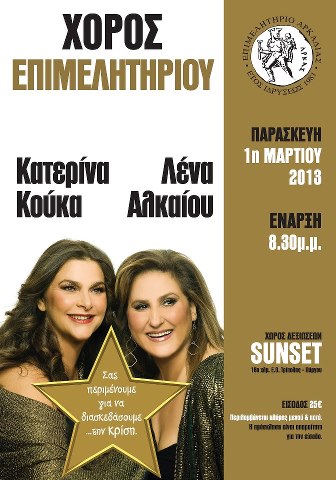 Ένα μεγάλο μουσικό γεγονός, με την συντροφιά της Κατερίνας Κούκα, της Λένας Αλκαίου και νέων καλλιτεχνών με την 6μελή τους ορχήστρα θα απολαύσουμε στον χορό του Επιμελητηρίου Αρκαδίας, για την κοπή της πίτας, στο χώρο δεξιώσεων «SUNSET» (περιοχή Νέου Καρδαρά) την Παρασκευή 1 Μαρτίου στις 8.30 το βράδυ.