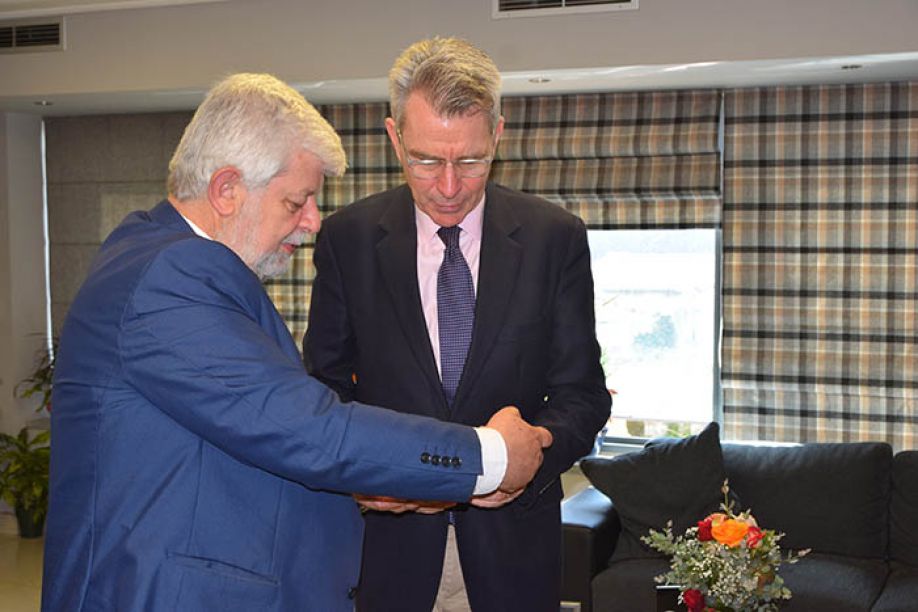 Ο Δήμαρχος Τρίπολης από την πλευρά του, ενημέρωσε τον κ.Πάιατ σχετικά με τις δυνατότητες ανάπτυξης της περιοχής μας, για τα δυνατά σημεία της αλλά και για τα μελλοντικά σχέδια τόνωσης της τοπικής οικονομίας και υποστήριξης των επενδύσεων σε συνεργασία πάντα με τοπικούς φορείς, για να εισπράξει το θετικό σχόλιο του κ. Πάιατ ότι «οι κινήσεις αυτές είναι στη σωστή κατεύθυνση».