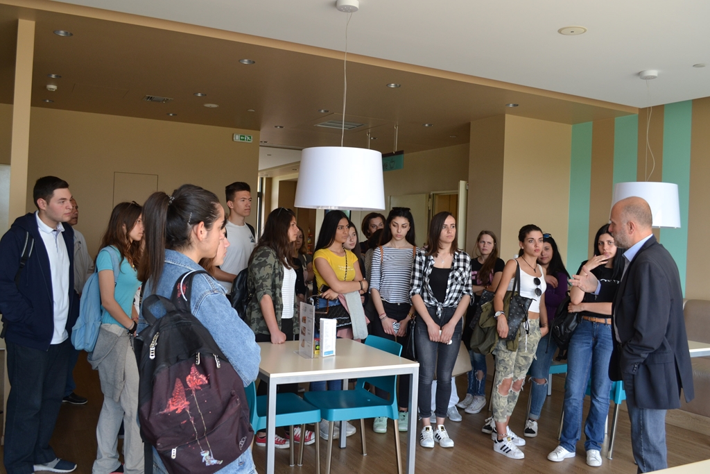 Τους μαθητές και τους συνοδούς καθηγητές ξενάγησαν στο Κέντρο στελέχη του Τμήματος Επικοινωνίας και Δημοσίων Σχέσεων ενώ τους μίλησε και η Πρόεδρος του ΚΑΑ “ΠΑΛΛΑΔΙΟΝ” κ. Κατερίνα Καρνιαδάκη.