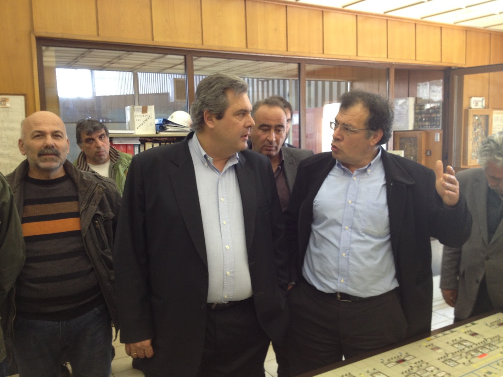 Ο πρόεδρος των Ανεξαρτήτων Ελλήνων συνομίλησε με εργαζόμενους και άκουσε όσα του είπαν οι εκπρόσωποι των εργαζομένων για τα θέματα της έλλειψης λιγνίτη , για τα προβλήματα με την διαθεσιμότητα των μονάδων , για την ανικανότητα των διοικούντων, για εργολάβους , για παράνομους εργαζομένους και πολλά άλλα.
