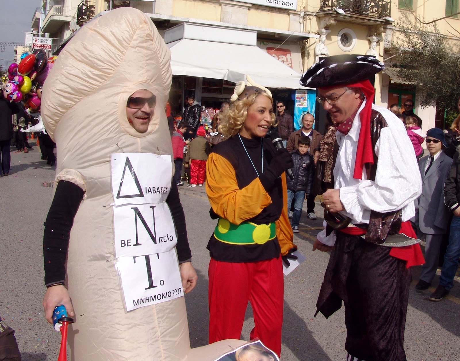 Ένας από τους καρναβαλιστές, ήταν ντυμένος φαλλός και έγραφε: «Διάβασες, Βενιζέλο, το νέο μνημόνιο;».