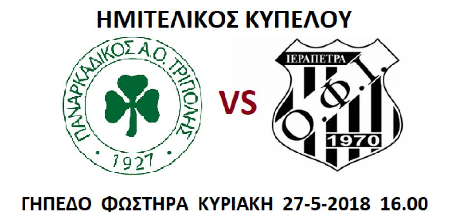 Τον πιο σημαντικό αγώνα της φετινής χρονιάς θα δώσει την Κυριακή 27 Μαΐου 2018 η ιστορική ομάδα του Παναρκαδικού. Η ομάδα της Τρίπολης διαγράφοντας μία εντυπωσιακή πορεία κατάφερε να φτάσει στην ημιτελική φάση του Κυπέλλου Ερασιτεχνών Ελλάδας και αγωνίζεται την Κυριακή με τον Ο.Φ.Ιεράπετρας διεκδικώντας το ένα εισιτήριο για το μεγάλο τελικό του θεσμού.