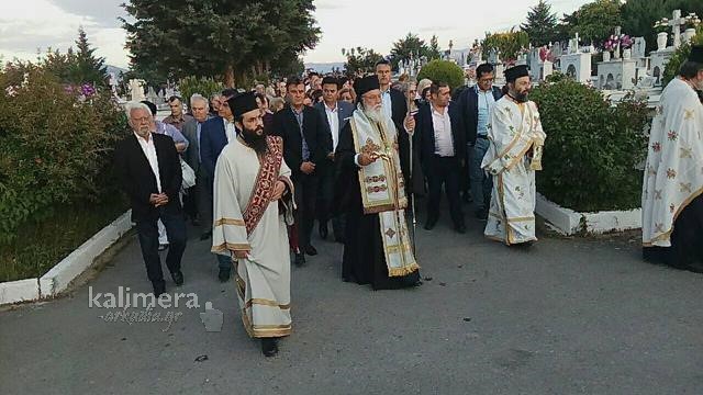 Πλῆθος Τριπολιτῶν καί ἀρχόντων συμμετεῖχε στήν Ἀκολουθία τοῦ Ἑσπερινοῦ καί στήν λιτάνευση τῆς ἱερᾶς Εἰκόνος ἐντός τοῦ Κοιμητηρίου.