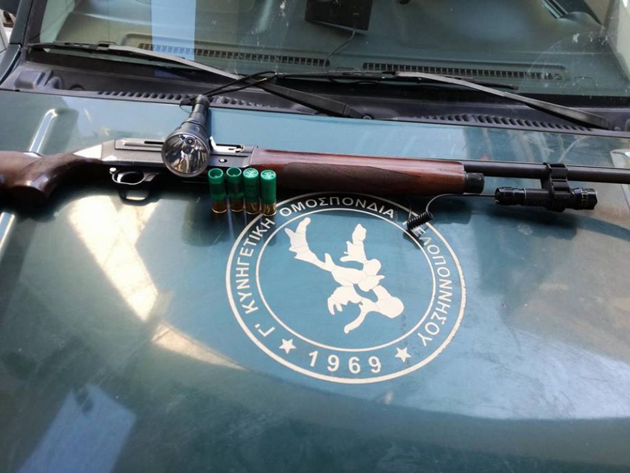 Το όπλο δεν βρέθηκε εντός του οχήματος διότι προφανώς ο οδηγός το πέταξε όταν αντιλήφθηκε τους θηροφύλακες. Πράγματι η κυνηγετική καραμπίνα με τον ενσωματωμένο προβολέα βρέθηκε πεταμένη πιο πίσω στο δρόμο, ήταν παραποιημένη και έφερε 2 μονόβολα και 2 φυσίγγια-μπίλιες κατάλληλα για θήρευση αγριόχοιρου.