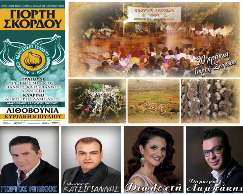 Ο Αγροτικός και Πολιτιστικός Σύλλογος Λιθοβουνίων σας προσκαλεί στη Γιορτή Σκόρδου, που διοργανώνει την Κυριακή 8 Ιουλίου 2018 στις 21:00 στην πλατεία του χωριού.