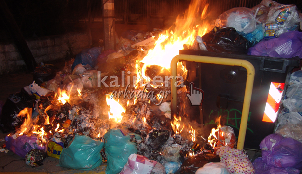 Φωτιά στα σκουπίδια που βρίσκονται γύρω από τον κάδο απορριμμάτων στην περιοχή του Σεχίου, στα φανάρια, πίσω από την Ακαδημία, ξέσπασε ξαφνικά, από άγνωστη αιτία, λίγο πριν τις 2.00 τη νύχτα της Παρασκευής, στην Τρίπολη.