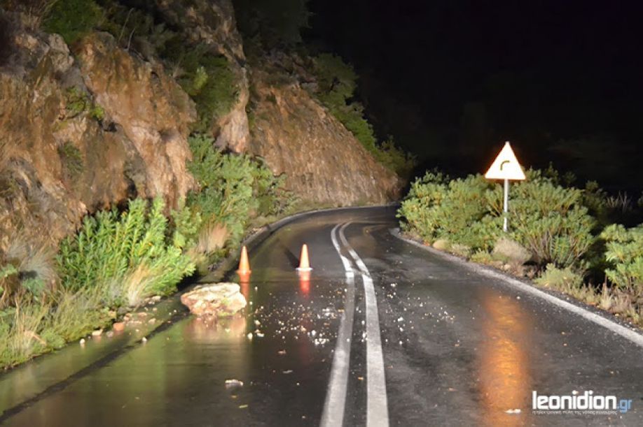 Οι συνεχείς και ισχυρές κατά διαστήματα βροχοπτώσεις που πλήττουν από χτες τη νύχτα την Νότια Κυνουρία, προκαλούν διαρκώς πτώση βράχων σε διάφορα σημεία του επαρχιακού δρόμου Λεωνιδίου -Άστρους, όπως ενημέρωσε αναγνώστης του Leonidion.gr.