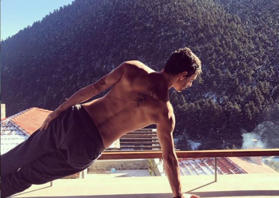 Μάλιστα, στο Instagram ανάρτησε μία φωτογραφία ημίγυμνος να κάνει γυμνατική, με φόντο το βουνό!
