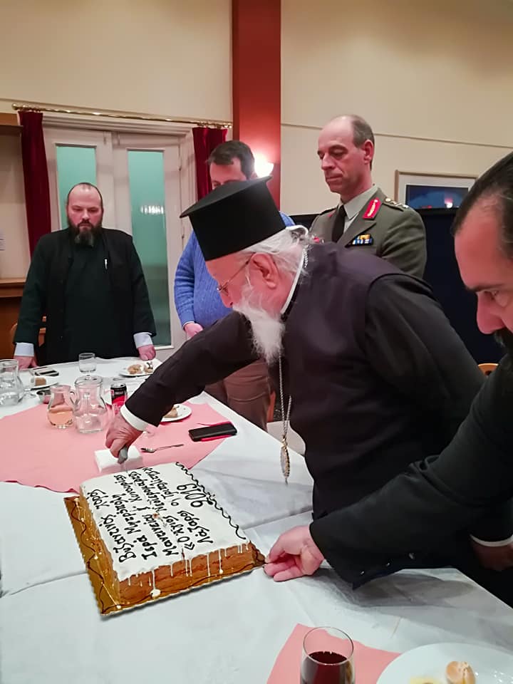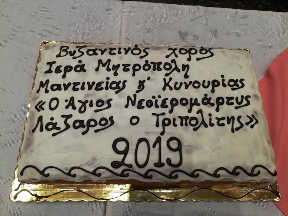 Στόν ἀπόηχο τῶν ἑορτῶν τοῦ ἁγίου Δωδεκαημέρου, τήν Τρίτη 15 Ἰανουαρίου 2019, ὁ Σεβασμιώτατος Μητροπολίτης Μαντινείας καί Κυνουρίας κ. Ἀλέξανδρος παρέθεσε δεῖπνο στά μέλη τοῦ Βυζαντινοῦ Χοροῦ τῆς Ἱερᾶς Μητροπόλεως «Ὁ Ἅγιος Νεοϊερομάρτυς Λάζαρος ὁ Τριπολίτης» καί εὐλόγησε την πατροπαράδοτη Ἁγιοβασιλόπιττα.
