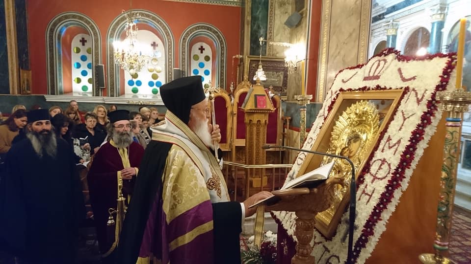 Σήμερα Παρασκευή, 15 Μαρτίου 2019, στήν δεύτερη Ἀκολουθία χοροστάτησε ὁ Σεβασμιώτατος Μητροπολίτης Μαντινείας καί Κυνουρίας κ.κ. Αλέξανδρος, κατά τήν ὁποία ἔψαλε καί ἀπέδωσε περίφημα τούς ὕμνους πρός τήν Θεοτόκο ἡ Μεικτή Χορωδία τῆς Ἱερᾶς Μητροπόλεως, πού ἀπαρτίζεται ἀπό νέους καί νέες, ὑπό τήν καθοδήγηση καί τήν διδασκαλία τοῦ Πρωτοψάλτου τοῦ Μητροπολιτικοῦ Ναοῦ κ. Βασιλείου Γεωργαρᾶ.