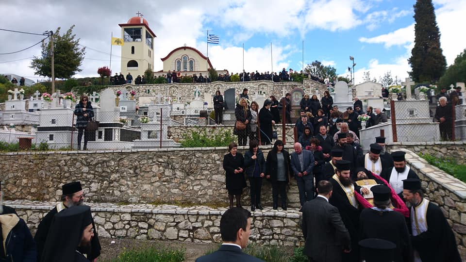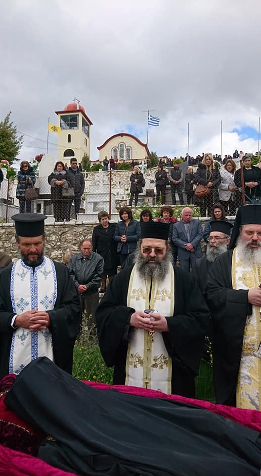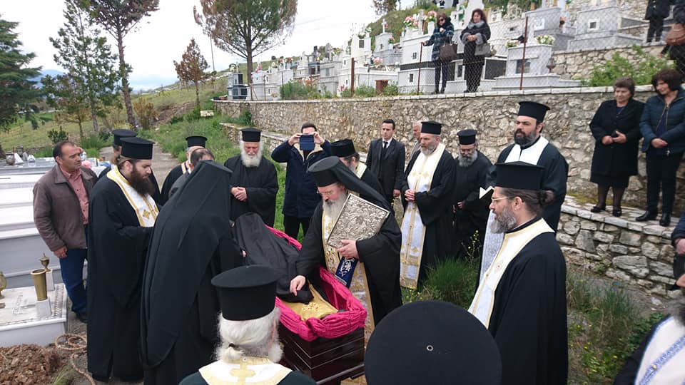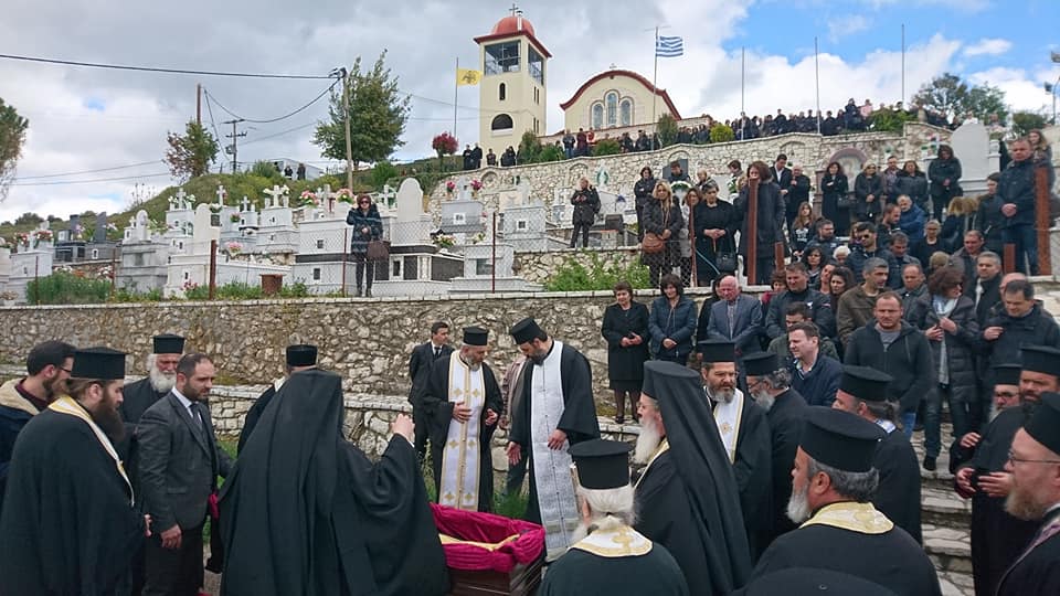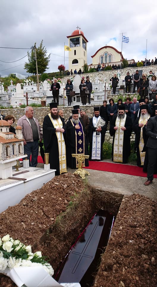 Μετά τήν ἐξόδιο Ἀκολουθία ἡ ταφή τοῦ μακαριστοῦ πραγματοποιήθηκε στό Κοιμητήριο του ἹεροῦἉγ. Νικολάου Μηλιᾶς.