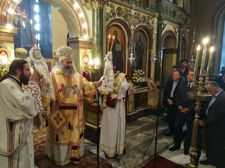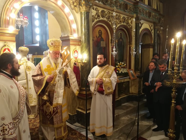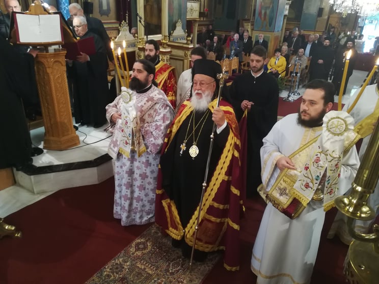 Μετὰ τὸ πέρας τῆς Θείας Λειτουργίας, ὁ Σεβασμιώτατος Μητροπολίτης μας, παρέθεσε γεῦμα στοὺς ἐπίσημους προσκεκλημένους στὸ Νεὸ Ἐπισκοπικὸ Μέγαρο.