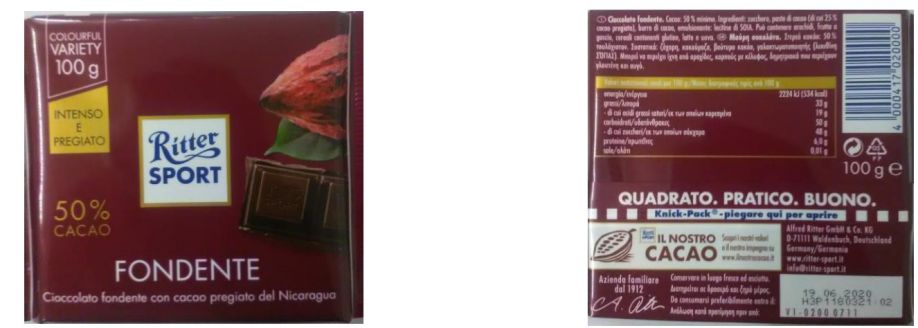 Συγκεκριμένα, πρόκειται για το προϊόν "Ritter SPORT" FONDENTE 50% σε συσκευασία 100g, με ημερομηνία ελάχιστης διατηρησιμότητας 19/06/2020 και αριθμό παρτίδας Η3Ρ1180321, το οποίο παρασκευάζεται στη Γερμανία. Ο Ε.Φ.Ε.Τ. ζήτησε την άμεση ανάκληση / απόσυρση του συνόλου της συγκεκριμένης παρτίδας του προϊόντος από την αγορά και ήδη βρίσκονται σε εξέλιξη οι σχετικοί έλεγχοι.