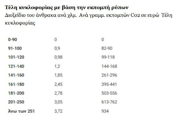 Αναλυτικά, το κόστος στα τέλη κυκλοφορίας που θα πρέπει να πληρώσουν φέτος οι ιδιοκτήτες ΙΧ είναι: