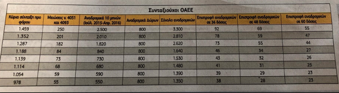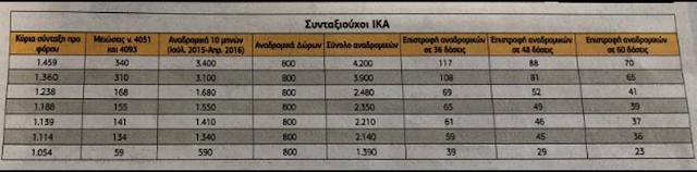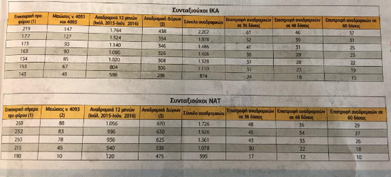 Το σχέδιο επιστροφών περιλαμβάνει ένα σενάριο για 36 δόσεις, ένα για 48 και ένα τρίτο για αναδρομικά σε 60 δόσεις.