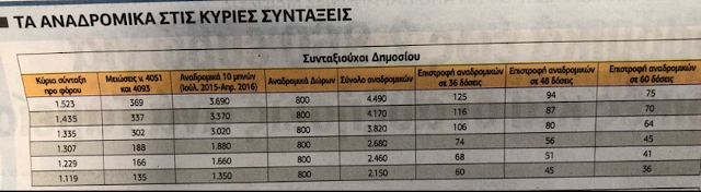Οι συνταξιούχοι του Δημοσίου έχουν λαμβάνειν ως 7.340 ευρώ συνολικά από παράνομες μειώσεις κύριων και επικουρικών συντάξεων για 10 και 12 μήνες αντίστοιχα. Αν δοθούν τα αναδρομικά σε 36 δόσεις θα έχουν μηνιαίες αυξήσεις σε κύρια και επικουρική, από 90 ευρώ το μήνα ως και 204 ευρώ το μήνα. Αν οι επιστροφές γίνουν σε 60 δόσεις, οι μηνιαίες αυξήσεις συντάξεων είναι από 54 ως 122 ευρώ το μήνα.