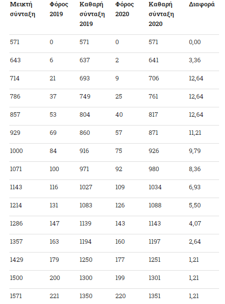 1η αύξηση: Η νέα φορολογική κλίμακα που ενδιαφέρει περισσότερο τους συνταξιούχους, είναι αυτή των φορολογούμενων χωρίς τέκνα καθώς τα παιδιά των περισσότερων συνταξιούχων έχουν χάσει πλέον την ιδιότητα του «προστατευόμενου τέκνου» τουλάχιστον με βάση τον ορισμό της εφορίας. Έτσι, οι αυξήσεις που θα δοθούν –ανάλογα και με το ύψος της σύνταξης- φαίνονται στον παρακάτω πίνακα: