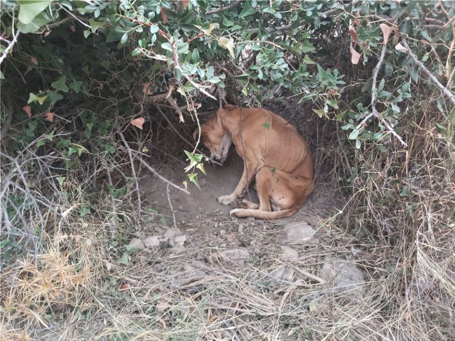 Η εικόνα δείχνει ένα ζώο που είχε εγκαταλειφθεί εδώ και ημέρες από κάποιον άνθρωπο που γνώριζε την περιοχή.