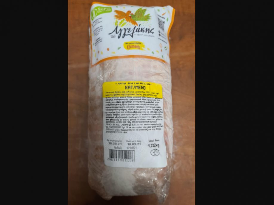 Ο Ε.Φ.Ε.Τ. και συγκεκριμένα η Περιφερειακή Διεύθυνση Αττικής, κατά τη διενέργεια ελέγχων στο πλαίσιο του Προγράμματος «Έλεγχος για Salmonella spp., Listeria monocytogenes και παρουσία σταφυλοκοκκικών τοξινών», προέβη σε δειγματοληψία τροφίμου με τα στοιχεία: «Ρολό Κοτόπουλο Κατεψυγμένο», με αριθμό παρτίδας: 33100921, ημερομηνία παραγωγής:10.09.2021 και ημερομηνία ανάλωσης κατά προτίμηση πριν από 10-09-2022, καθαρού βάρους 1,22 kg, που παράγεται από την επιχείρηση ΑΓΓΕΛΑΚΗΣ Α.Ε. και σε συνεργασία με τα Εργαστήρια, Δοκιμών και Ερευνών Τροφίμων Αθήνας του ΕΦΕΤ, διαπιστώθηκε η παρουσία του παθογόνου βακτηρίου Salmonella spp.