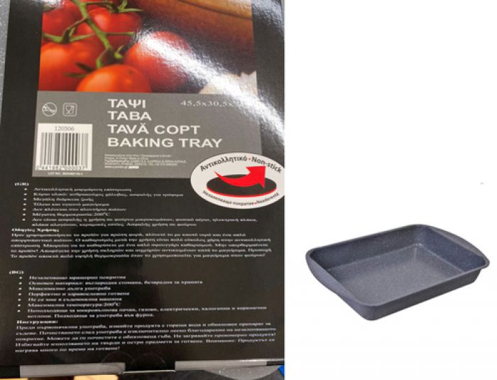 Συγκεκριμένα πρόκειται για αντικολλητικό ταψί διαστάσεων 45,5x30,5x7cm και Lot No: B65AM2140-3, προέλευσης Κίνας, το οποίο διανέμεται στην Ελλάδα από την επιχείρηση «JUMBO ΑΕΕ».
