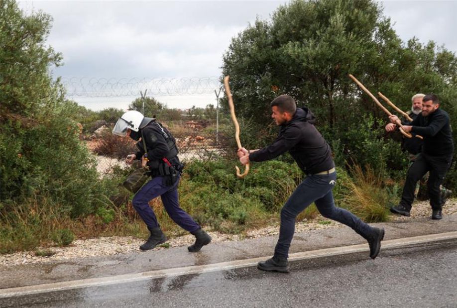 Στο σημείο έπεσε βροχή από πέτρες ενώ ομάδα αγροτών αναποδογύρισε περιπολικό προκαλώντας του φθορές.