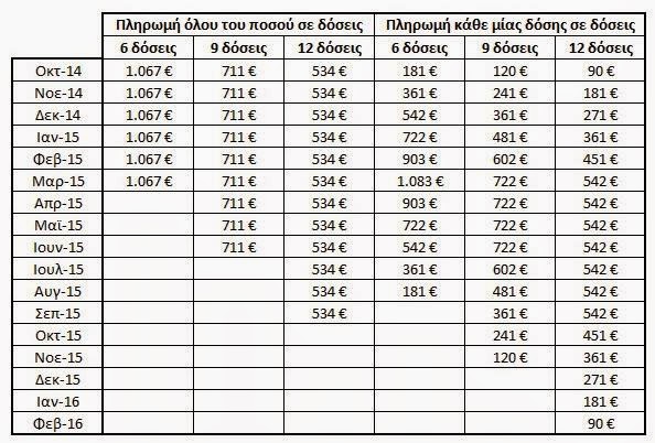 3) Να πληρωθεί κάθε μία εκ των 6 δόσεων σε 6, 9 ή 12 άτοκες δόσεις με την πιστωτική κάρτα
