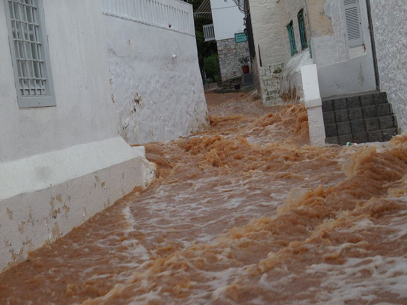 Οι κάτοικοι της Ύδρας κάνουν λόγο για μια από τις μεγαλύτερες πλημμύρες που έχει σημειωθεί στο νησί, ενώ πολλοί είναι εκείνοι που «ανεβάζουν» στους λογαριασμούς τους στα μέσα κοινωνικής δικτύωσης φωτογραφίες από το καταστροφικό «χτύπημα» της κακοκαιρίας.