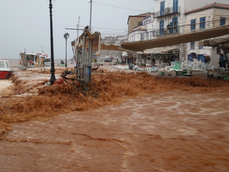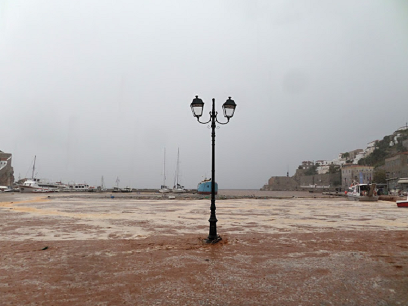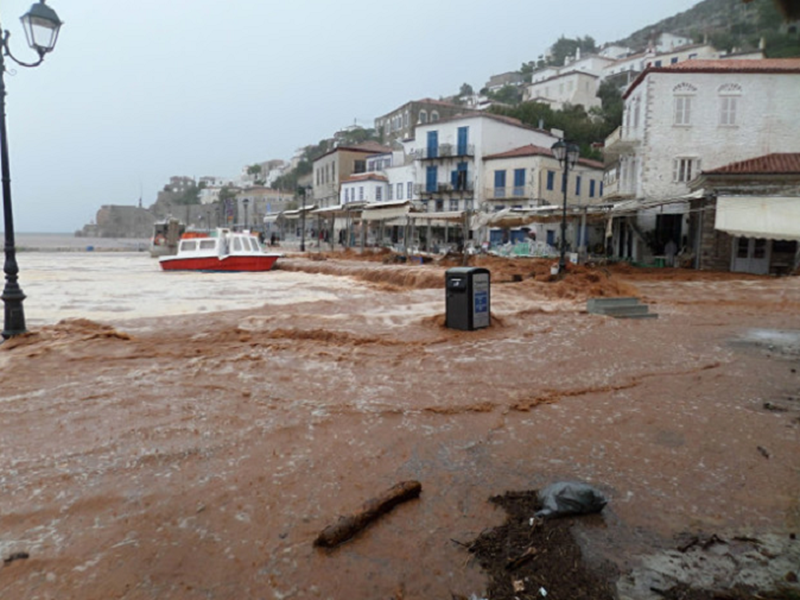 Η καταιγίδα προκάλεσε υπερχείλιση των χειμάρρων του νησιού με αποτέλεσμα να δημιουργηθούν προβλήματα στο λιμάνι και τον οικισμό της Ύδρας, αλλά και να πλημμυρίσουν πολλά σπίτια.