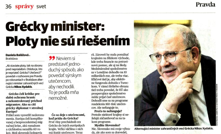 Αν η Ελληνική Κυβέρνηση αποκαλεί «Μακεδονία» τα Σκόπια, τότε τι περιμένουν από τους άλλους; Ο Υπουργός Νίκος Ξυδάκης εμφανίζεται σε συνέντευξή του στην σλοβακική Pravda και στη δημοσιογράφο Daniela Balážová, να "βαφτίζει" τα Σκόπια με το όνομα «Μακεδονία».