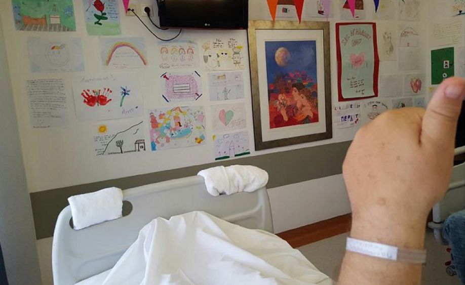 Ειμαι εδω στο δωματιο του νοσοκομειου γεματο απο ζωγραφιες κι ευχες των παιδιων απο τα σπιτια μας.